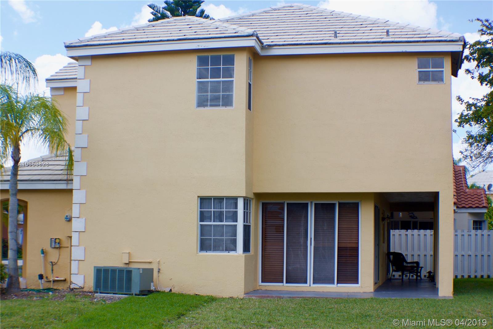 Hurry to see this charming two story home in desirable Bermuda Springs. Calling all cooks to see the upgraded kitchen with gorgeous cabinets, stainless steel appliances & granite counter tops. Kitchen is open to the family room/dining area. Tile in social areas downstairs; real wood upstairs on landing & all three bedrooms; carpet on stairs. All three bedrooms upstairs. A shower was added to the first floor half bath making this a true 3 bedroom, 3 bath home. Walking distance to Indian Trace Elementary. All A-rated Weston schools. Great community amenities: community pool, tot lot and half basketball court. Gated and low HOA. Very well maintained community.