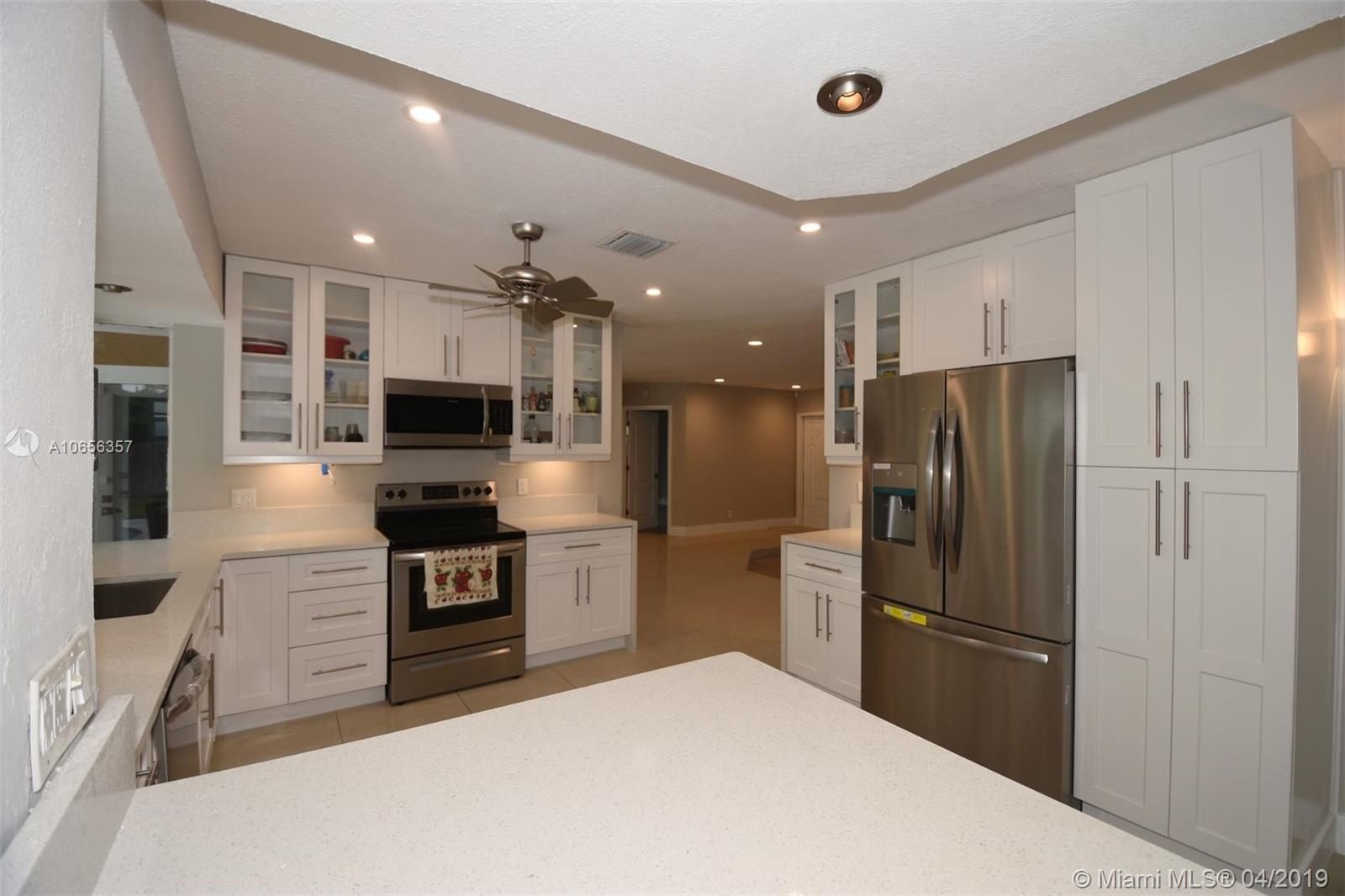 UPDATED HOLLYWOOD HILLS POOL HOME, 2333 ft.² on a large estate sized 13,514 ft.² lot (100 x 130) with 3 bedrooms, 2 baths, oversized 2 car garage, deep pool. Home is must-see, completely updated, move-in condition, new tile/wood floors, 5 ton a/c, new ductwork, new custom kitchen, new appliances, range, d/w, counter depth refrigerator, microwave, quartz countertop, pantry, glass pass through to pool. Open concept with 2 updated baths, glass shower enclosure, oversized master suite, custom lighting, tankless h/w heater, custom closets, large patio/pool area for entertaining. Quiet mini split a/c in master & garage, sprinkler,well, fenced rear yard, Rear alley for garbage pickup & access, ext. storage, alarm, cameras. Walk to Temple, Chaminade High School, Orange Brook Elementary School.