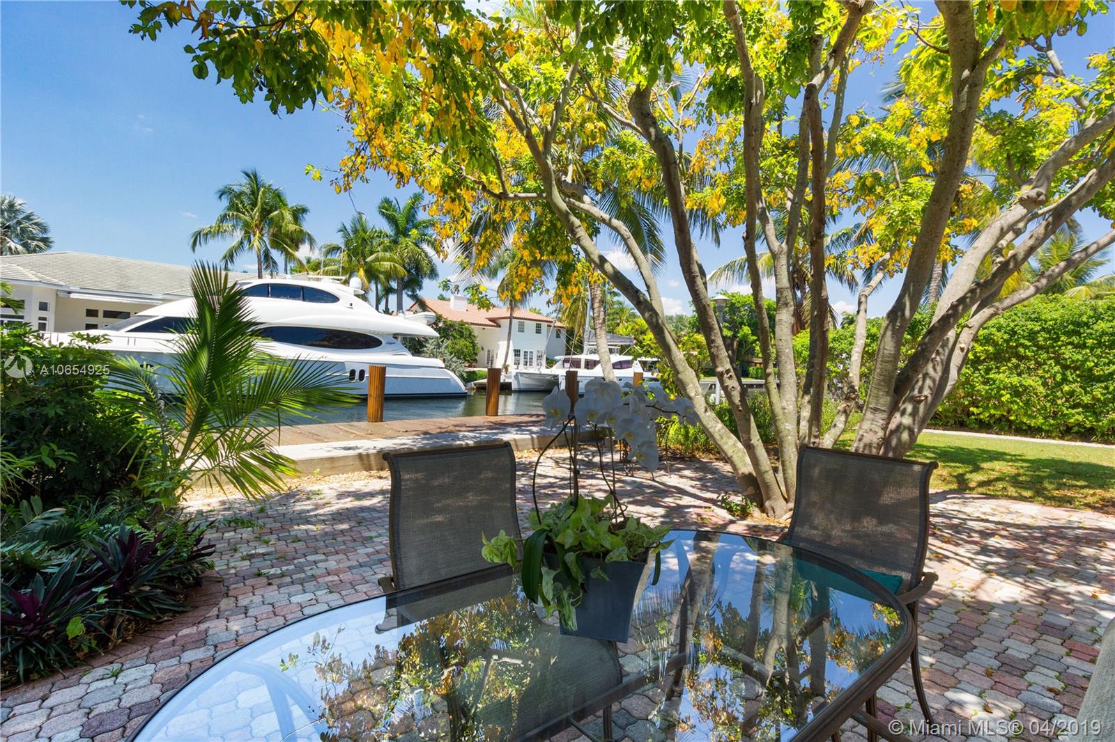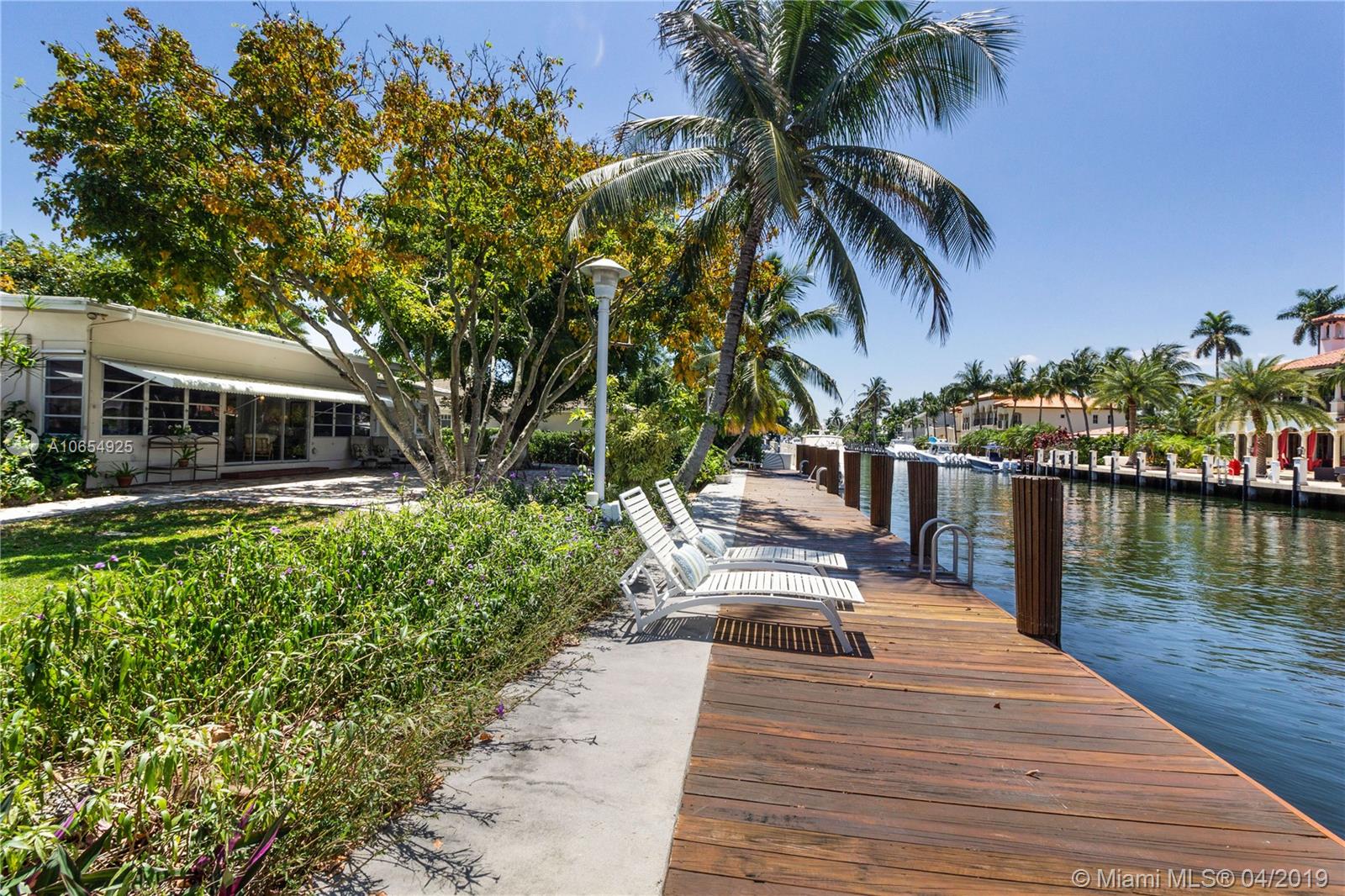 Rarely does a S. Las Olas Isles true mid century modern home on a Sailboat Depth Street become available. 1946 Architecture by renowned Nels S. Jacobson, who has property listed on the National Register of Historic Places. Spectacular boaters’ property offering 100’ deep water dockage, Seawall Updated in the 90's, quick ocean access, no fixed bridges. Incredible waterway views of all gorgeous newer homes, mature landscape, on palm tree lined cul-d-sac street, easy walk to beach, shops, dining. Split floor plan w/ AC Florida room leads to expansive yard; easily accommodates pool. Upgrades incl: volume ceilings, T&G detail, architectural fireplace, corner windows & original terrazzo floors w/ brass inlay. Pavered backyard & circular driveway. 2 car garage. Enjoy vibrant Ft. Lauderdale now!