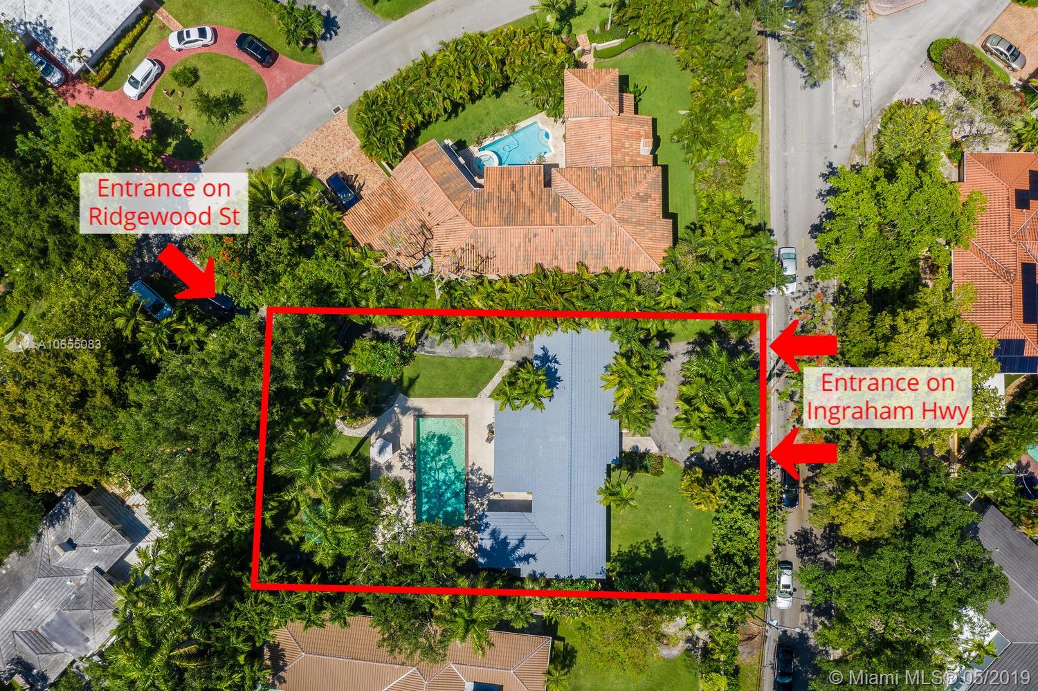 Impeccably renovated home sitting on a 14,000+ sq.ft lot w/an oversized pool & a garage. As soon as you enter the house, you will experience a “WOW” effect created by the large impact windows that bring the outdoors in with views of the expansive backyard & pool. The house minimalism creates an elegant & peaceful atmosphere. The split floor plan, the ample living room, the family room, the renovated kitchen & bathrooms make this property a great home. The garden hosts a superb deep pool, an orchid house, a romantic waterfall & plenty of space for exciting outdoor experiences. This property also has an entrance on Ridgewood St. It is wind mitigated, not in a flood zone & located in the Coral Gables part of Coconut Grove, East of Lejeune Rd. Near to the Grove, the Gables, MIA & South Miami.