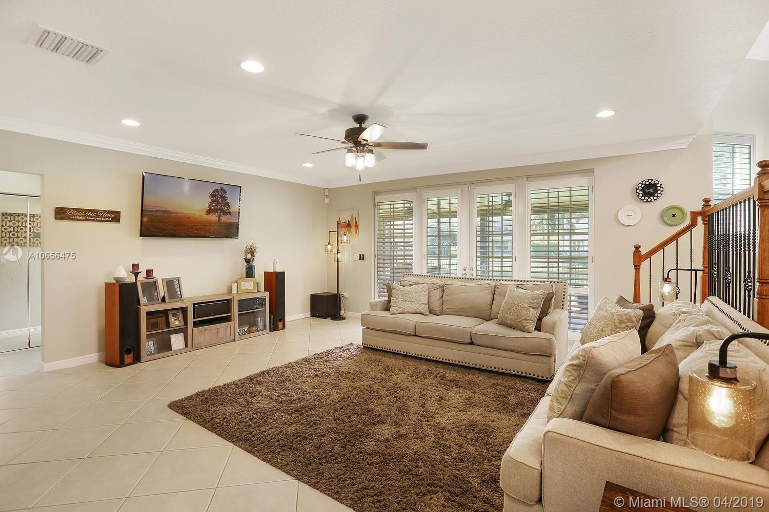 Located in the sought-after guard-gated community of Riviera Isles, this waterfront home has it all! Cathedral ceilings top the wide open floor plan with areas for formal and casual gatherings. A covered waterside patio allows comfortable outdoor events with a view! Expansive master suite with sitting area is located upstairs along with 2 additional bedrooms and Jack & Jill bath. The 4th bedroom and full bath are entry level no stairs required! Complete hurricane protection with accordion shutters upstairs. Riviera Isles boasts a grand clubhouse with a community pool, tennis court, sauna, fitness center, children's play area, trails and more. No HOA approval required. Call today for your private tour!