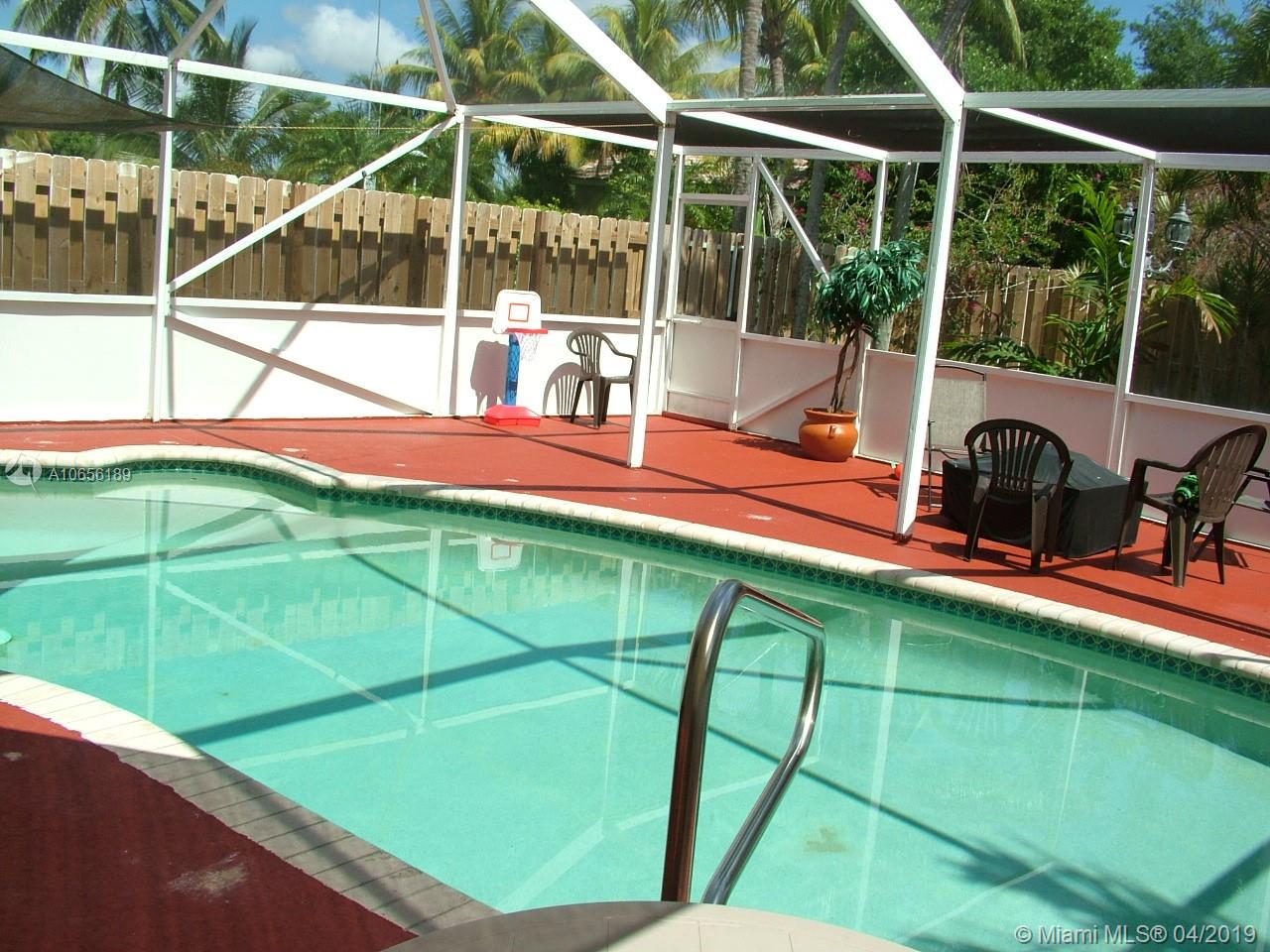 Your dream home is waiting in Miramar, Florida, a beautiful 2 story house with 1,929 sq. ft. of living area, 3 full bedrooms, 3 full bathrooms, a 2-car Garage, a pool with solar panels and a water heater, a patio screen that covers the whole pool area, a spacious kitchen with a granite counter, and updated appliances. Accordion Hurricane Shutters are located in all windows. Contains a central air conditioner. The first floor contains beautiful concrete, tiles , and the second floor has laminate wood as the flooring. It has been owned by the first buyer since 1996.