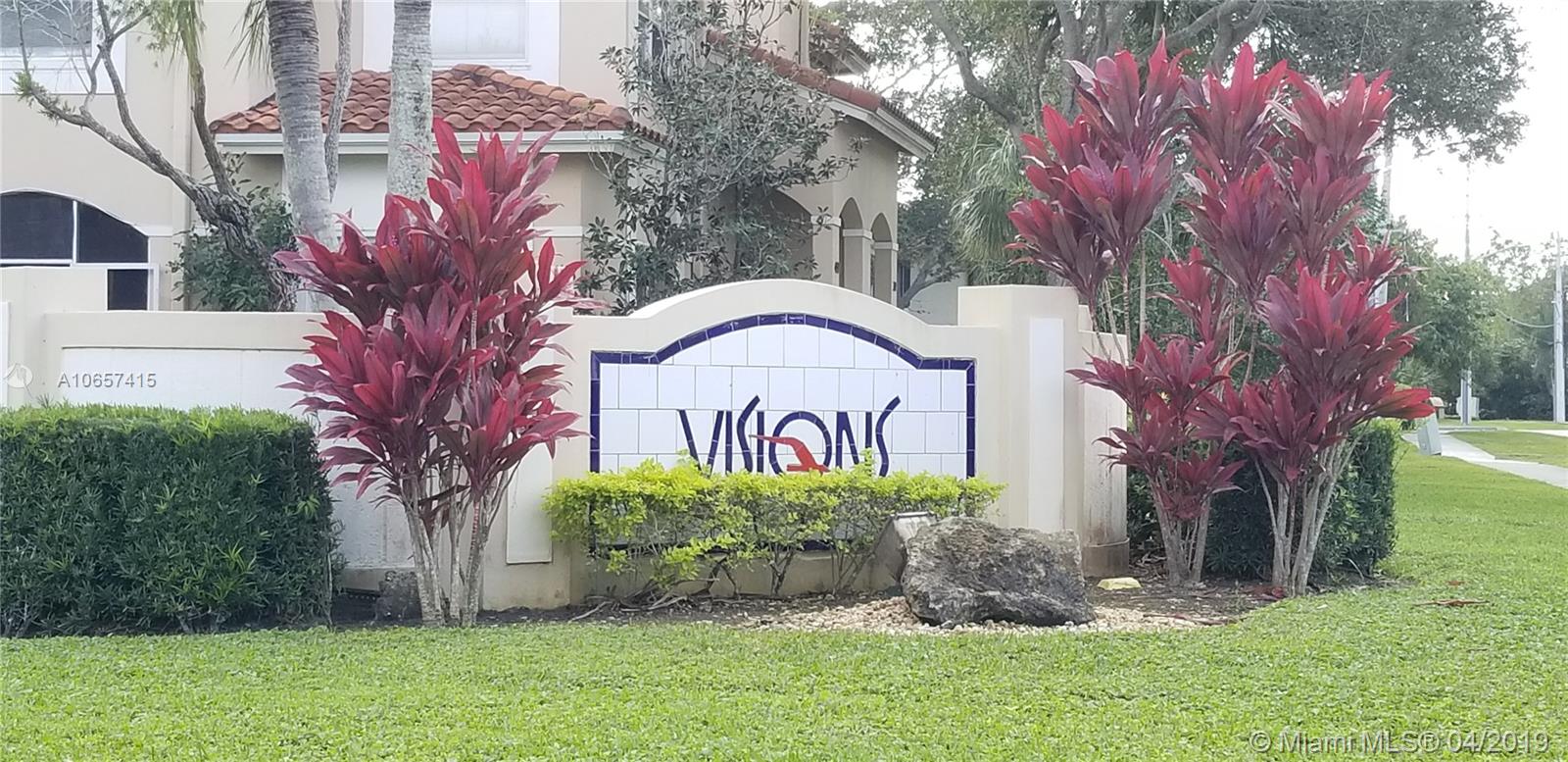 Get there first! don't miss this opportunity lo live in quiet peaceful and beautiful WESTON. Newest townhomes in the area. LARGE spaces corner townhome, 3 bd. 2 1/2bath perfect to create your own memories. Very bright, lots of windows. Association responsible for roof maintenance, rare in Weston. Large fenced patio for entertaining. Large kitchen with space for breakfast area. Lots of storage space including it's own locked room in patio area. Easy ACCORDION shutters throughout the house. Master bedroom with walking closet and Jacuzzi in bath. Tile flooring and wood flooring upstairs. Well kept community, full maintenance included. Be part of beautiful Bonaventure Club as a Visions resident, pools, club house, theater, Gym, billiards, classes for children and adults and so much more.