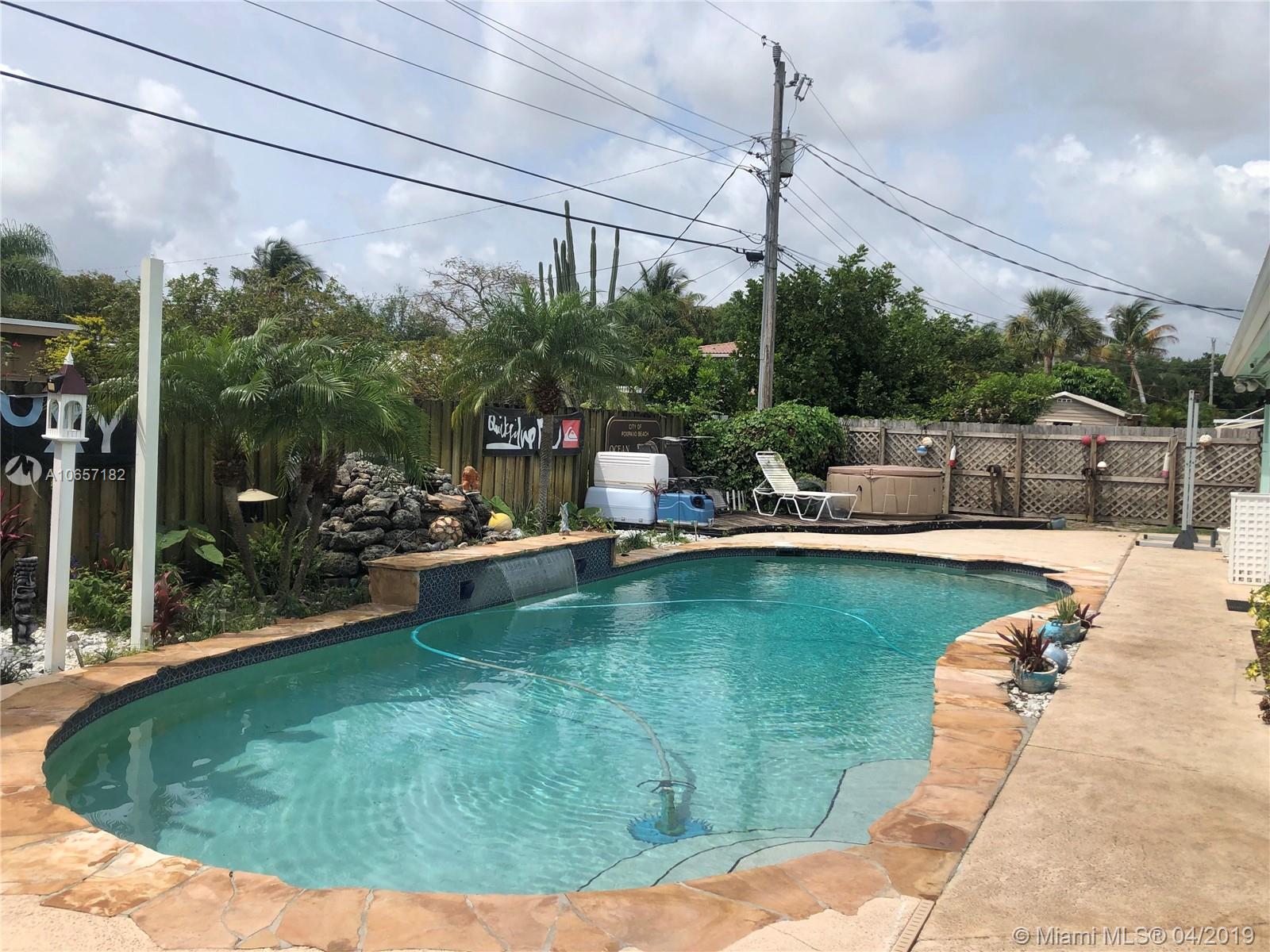 Beautiful 3bed/2bath + additional office/den with circular driveway and one car garage home located in highly sought after Lyons Park neighborhood. Open floor plan, great for entertaining. Updated kitchen and new stainless appliances, new roof (2016), new tub in bathroom, pool motor (2019), hot water heater (2019), french doors, accordion shutters. House tented in 2018 with renewed insurance. Beautiful fenced backyard with tropical landscaping and a beautiful updated 'salt system' pool. Enjoy privacy in your own oasis with your friends and family. Freestanding pergola with paved sitting area and bar. Big laundry room/pantry. Has extra space on driveway to park additional cars, RV or boat. Zoned for top rated McNab elementary school. Close to shopping, dining, beaches and I-95.