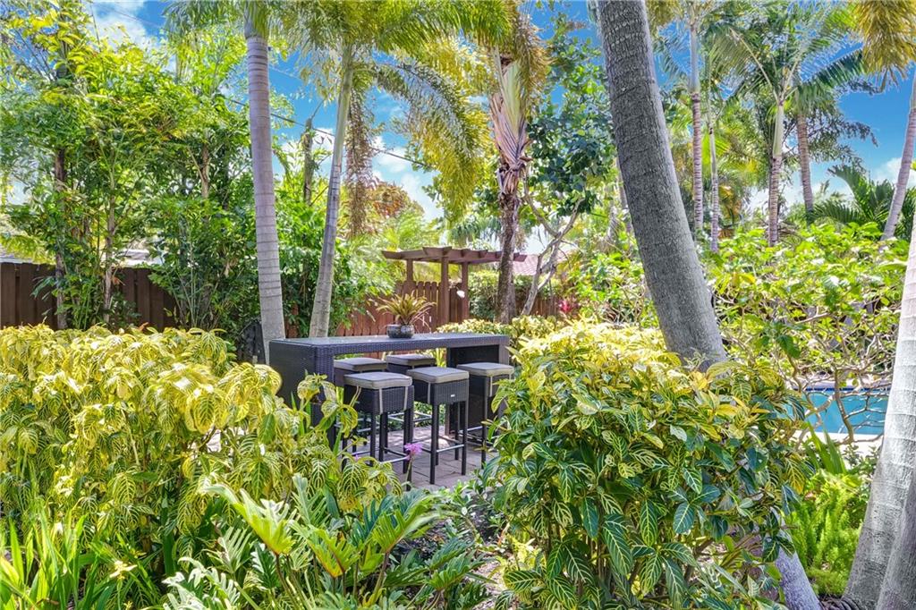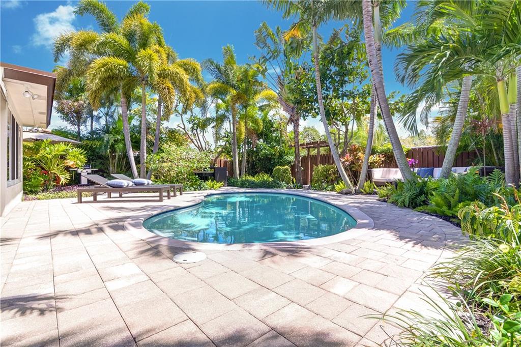 Your own private resort in highly sought after North Ridge section of Poinsettia Heights. This beautifully landscaped home, features light/neutral tile and paint throughout, outdoor bar, heated saltwater pool, and a backyard perfect for entertaining. Updated with hurricane impact windows, plantation shutters, granite counters, stainless appliances, tile roof, refinished pool, landscape lighting, irrigation system and new fencing. Indoor laundry room and carport. Close to beach and popular shopping / dining.