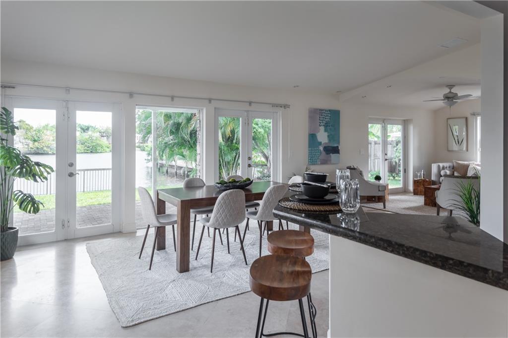 Gorgeous wide water views from this corner lot home in lovely Middle River Terrace. Completely remodeled from the studs out in 2008/2009, this charming two bed two bath home boasts all new electrical, plumbing and tasteful finishes. Built for entertaining! You'll feel right at home in this open floor plan with high ceilings and lots of natural light streaming in from the abundance of large windows and french doors. This conveniently located neighborhood is close to Wilton Manors, downtown Fort Lauderdale, the beaches and I95. Recently painted interior. All PGT impact windows and doors. Fully fenced and very private. Sprinklers on well.