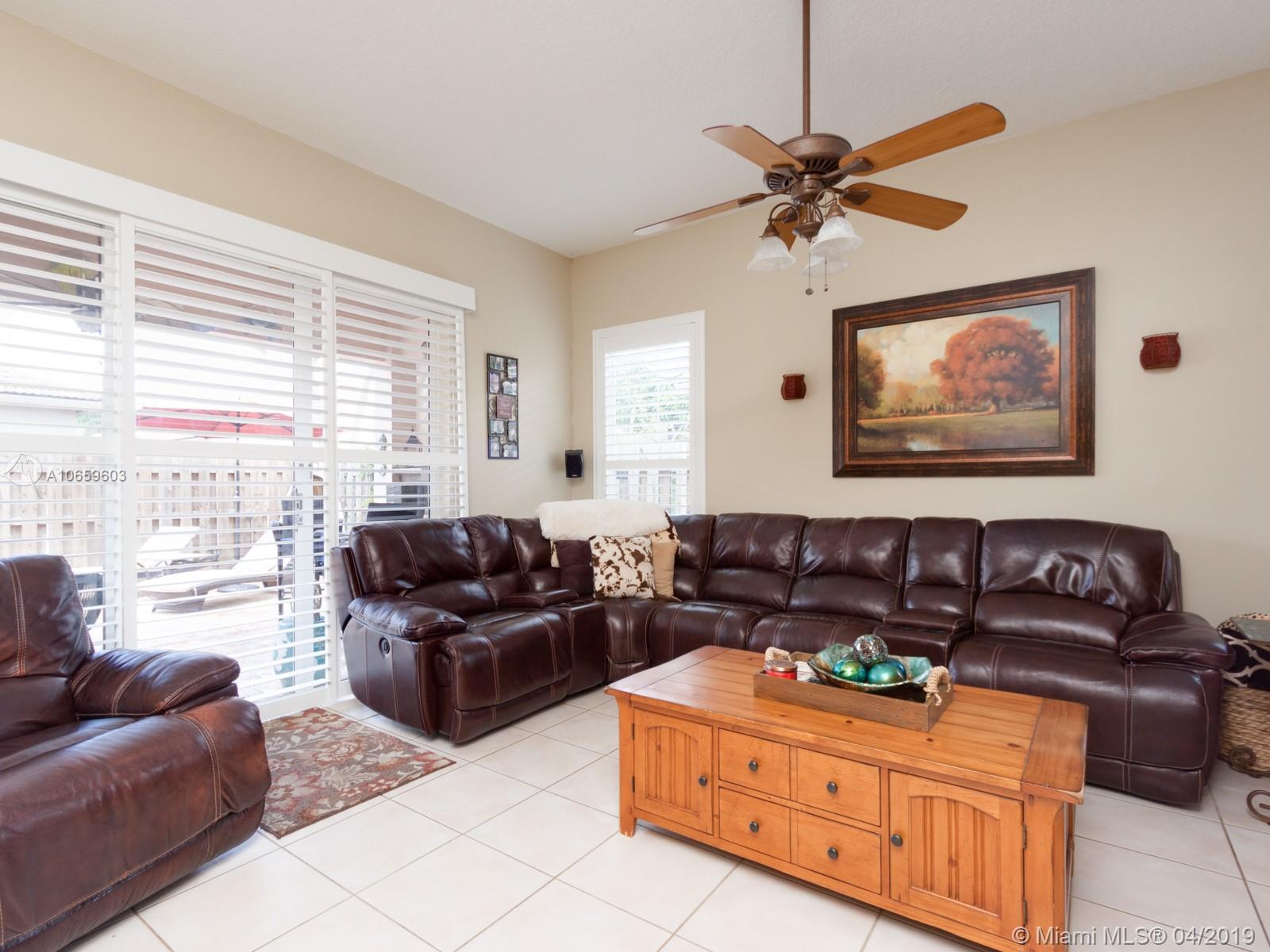 Beautiful and meticulous 3/2/1 in the gated community of Poinciana Parc in Davie. This home boasts tile floors throughout and interior Plantation shutters. The kitchen has upgraded cabinetry, Quartz countertops and glass tile backsplash with new appliances. (1yr old.) Outside patio has been redone completely in Travertine marble. The pool is new and has been resurfaced with Diamond Bright (2018). The pool has an upgraded pump and filter and LED lights as well as a sun shelf. The pool can be controlled wirelessly via smartphone app. The a/c is 2 months old inside/out, Water heater 3-5 yrs old and Nest Temperature system. This awesome home will not last long!