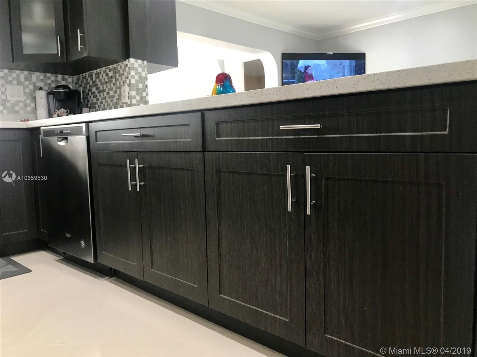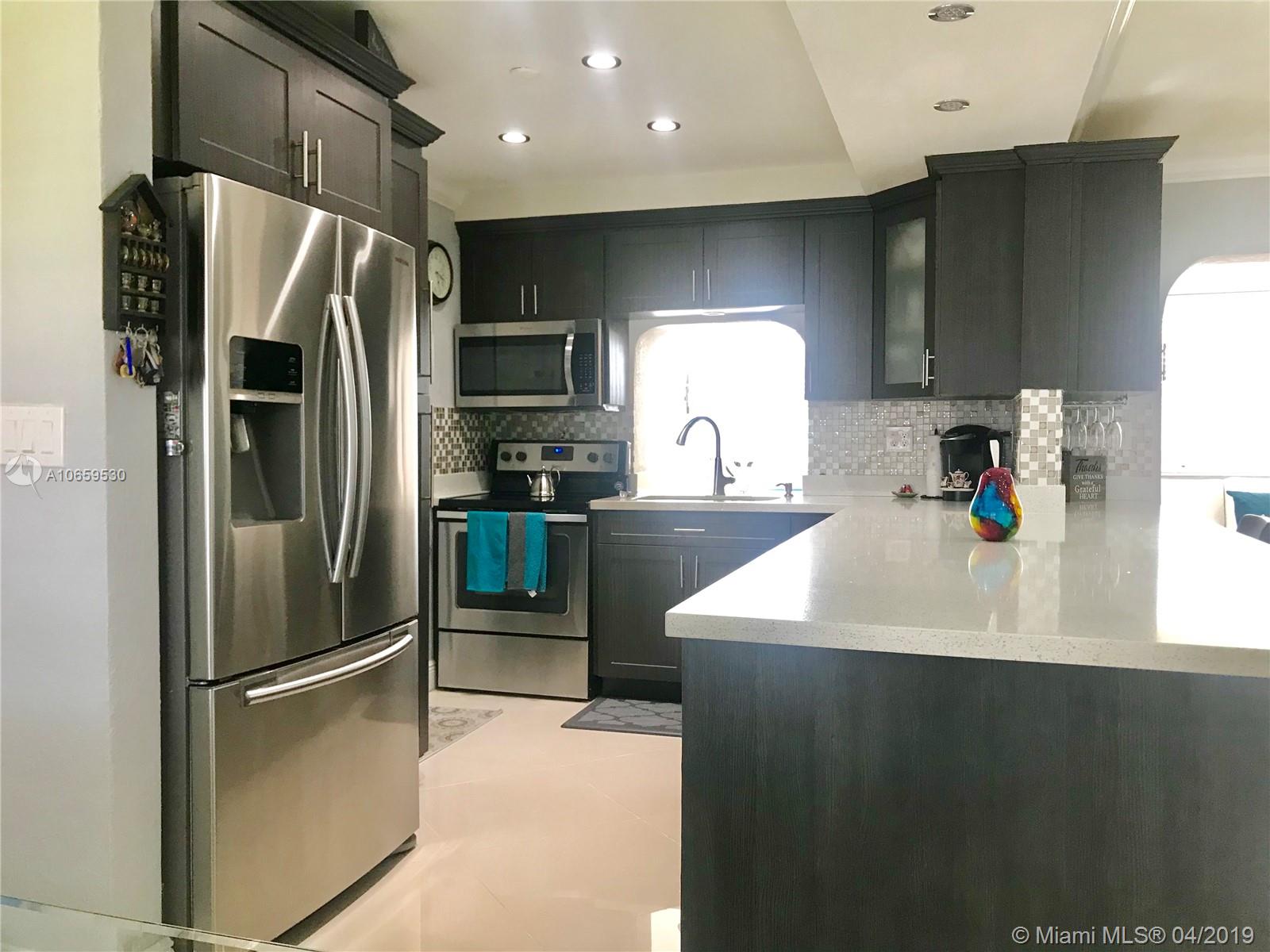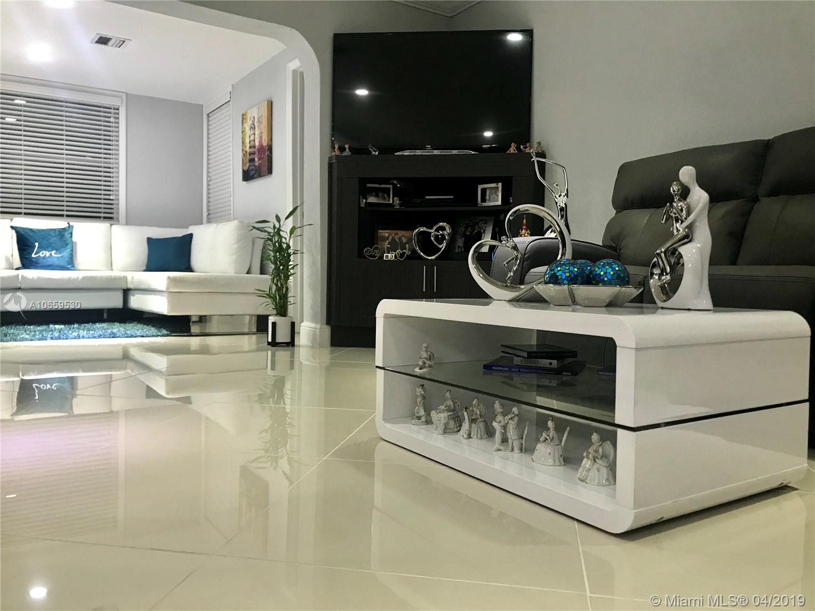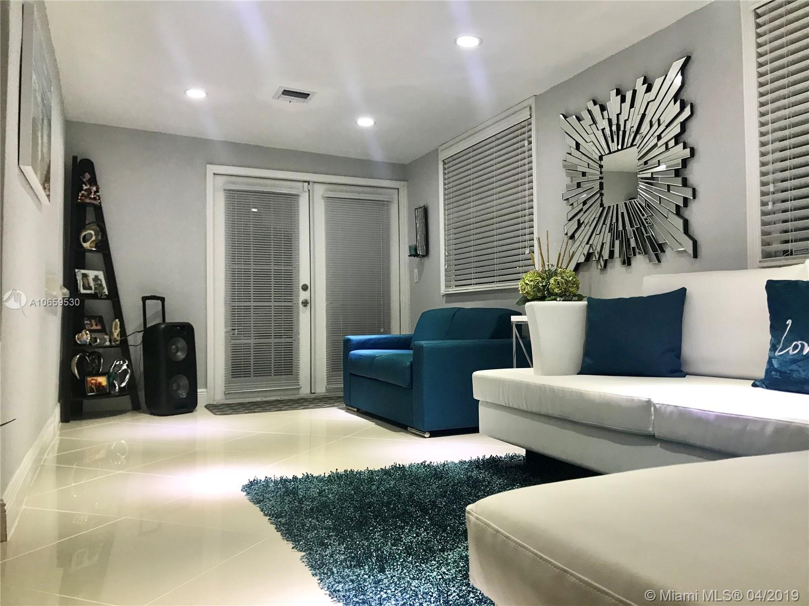 Updated single family home. Features Porcelan 24" tile, custom kitchen with spacious island & underneath storage, quartz counters, glass back splash, wine storage cabinet, soft closing drawers, stainless steel appliances, matching tv console, build in closets, led lighting, newer roof, concrete stamp spacious back yard with built in lighting, reflectors and electrical, impact back windows, french doors. Brand new bathroom with shower. Bedrooms are spacious. It has a newer roof, insulated walls, crown molding, front door with lock system.. Cameras are included. Has lots of natural light. Separate laundry room. This property is beautiful and move in ready. In the heart of Pembroke Pines, no HOA fees, close to the new Pines Center, hospitals, parks, highway, grocery. Will not last!
