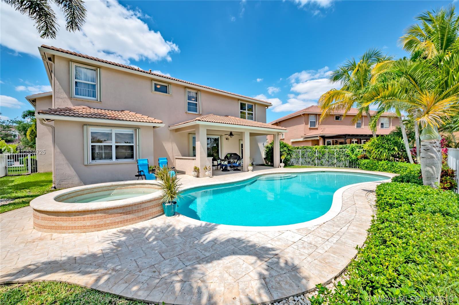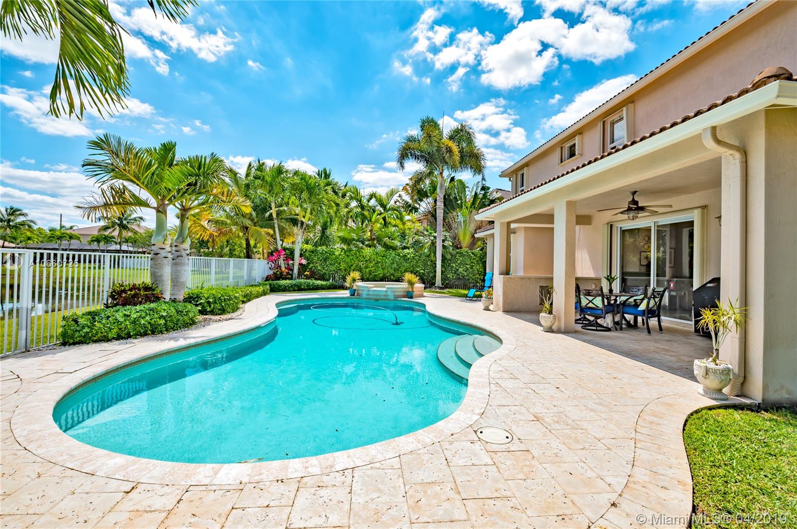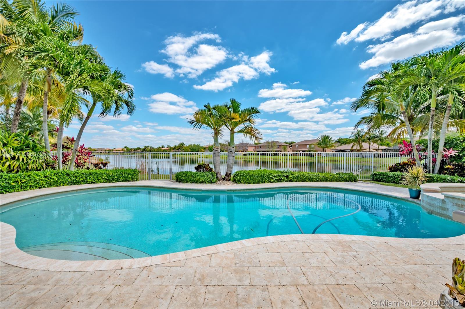 New on the market. Beautiful Hibiscus model home located in the exclusive community of Isles at Weston, located in the prestigious City of Weston. With some of the nation's top schools and the regional park only moments away. This amazing home has 5 bedrooms and 3 full bathrooms with 3 car garages with an amazing large 18x38 pool & spa. This home sits in the widest and best part of the lake and has accordion shutters throughout. This home has a formal dining and living room, while the kitchen has been recently renovated with gorgeous and modern counter tops and SS appliances with a large pantry and eat in café nook. There is a convenient guest suite downstairs with a full bathroom, while the master suite is very spacious and has overlooking views to the lake.