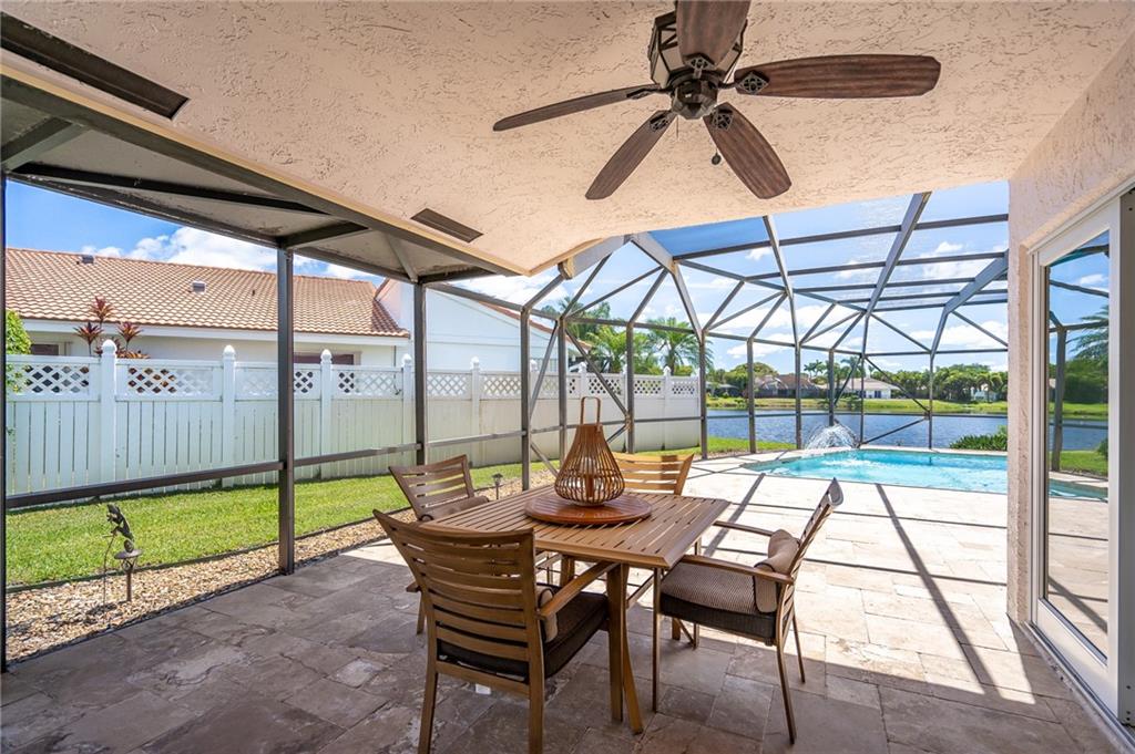 RARE EAST BOCA GATED LAKEFRONT ESTATE!!!! This home has it ALL! Stunning 3 bedroom in GATED community of Boca Lake Estates. 10 minutes to the beach. Located on a lake facing East to enjoy spectacular sunrises (& keep the home cooler) great backyard & pool area facing lake. Pool area replaced with travertine tiles. Heated pool & salt water system with fountain. Chef's dream kitchen. Many upgrades: new stainless hot water heater, refrigerator dishwasher & double oven, TRANE A/C., high impact windows & doors. Energy efficient with E-shield insulated attic. Built-in speakers in bedrooms, kitchen & s patio. Real coral wood fireplace. . CGI tinted high impact windows (the best). Hunter Douglas Luminette privacy sheers.