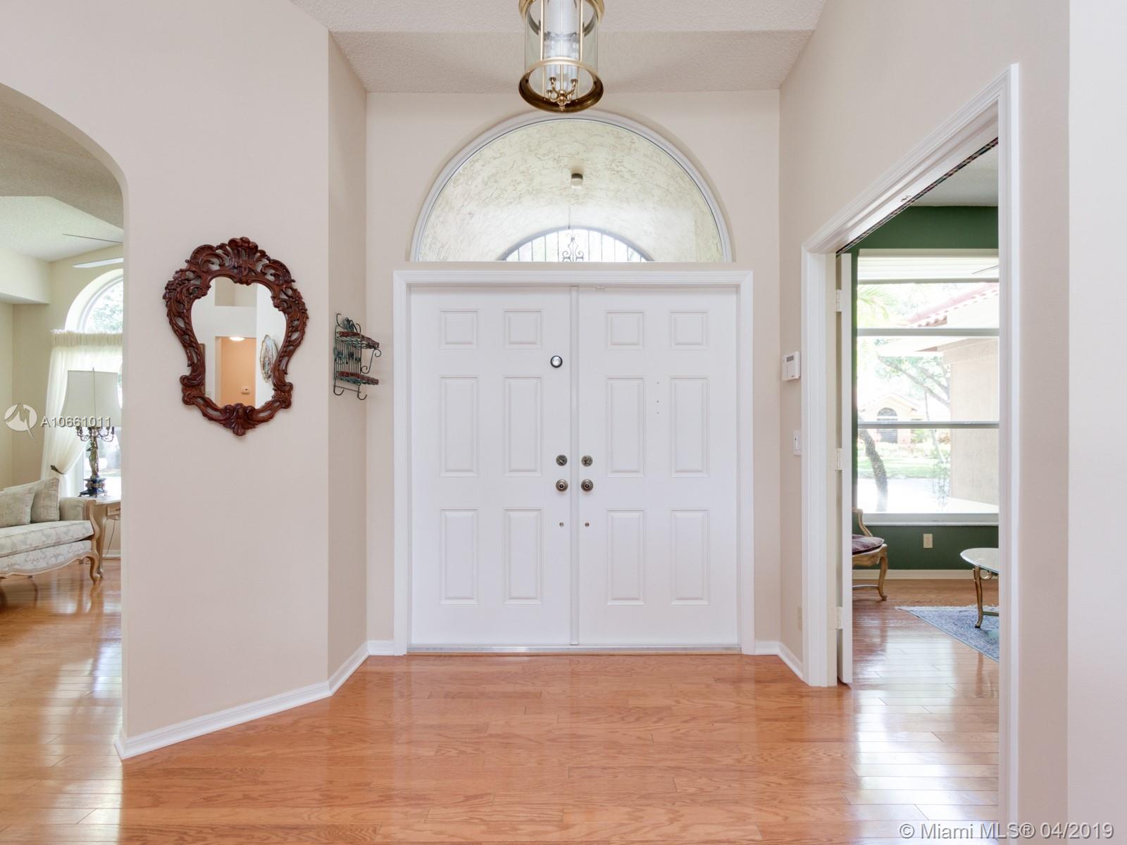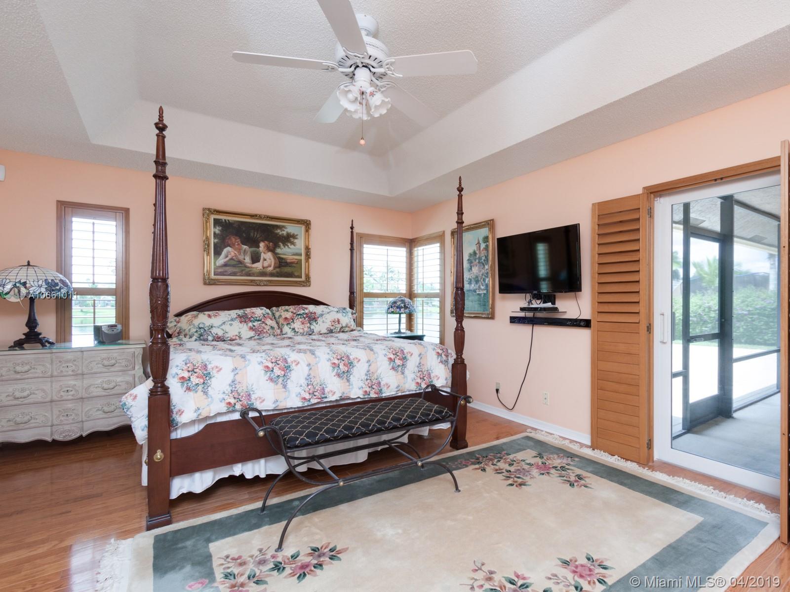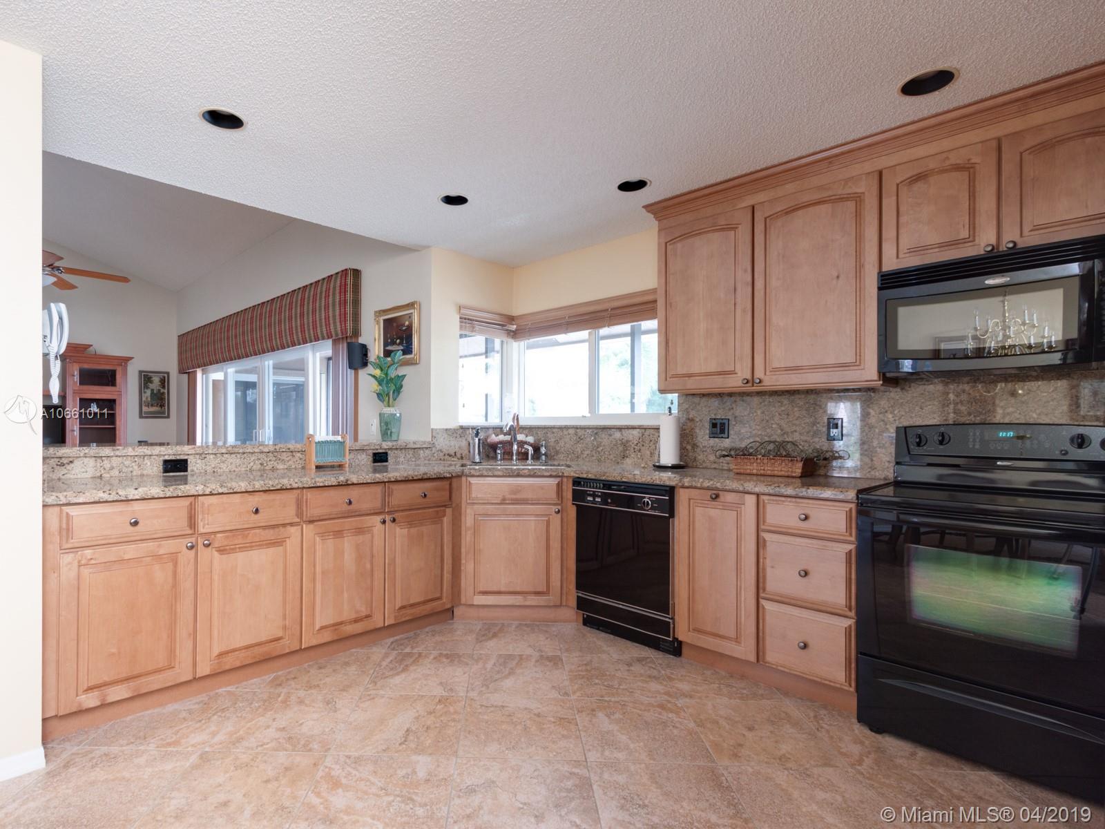Welcome to this gorgeous lakefront home with southern exposure on a canopied tree-lined street. Front entry with beautiful custom security gate. Covered screened-in rear patio runs the length of the house. Enormous 1700 sq.ft. concrete patio completes the backyard for your entertaining pleasure. 15,000 Watt generator. Wonderful layout with large living spaces and wood floors in living areas & master bedroom. 2-car garage with custom cabinets and sink. Spacious kitchen boasts porcelain tile floors, custom maple cabinets, granite counters, custom pantry. Alarm system. High-def video cameras with 18 ch. DVD recorder. Hurricane impact windows and doors throughout with accordion shutters and panels as extra storm protection. Home has recently been painted. Roof replaced in 2010, A/C 2013.