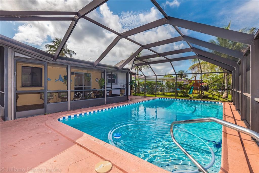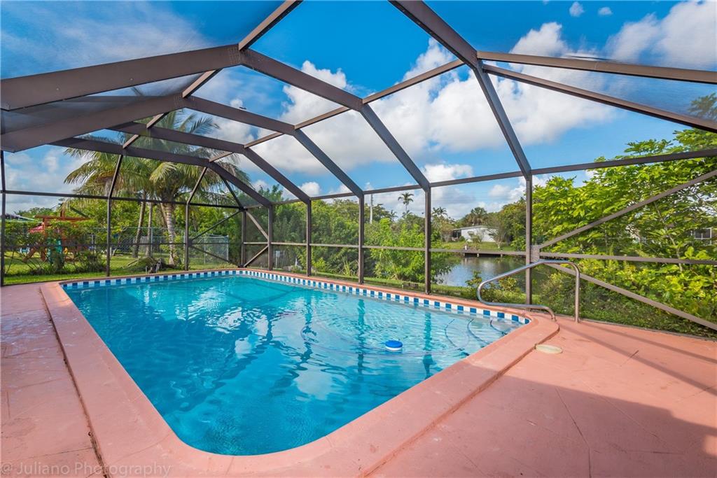 Centrally located Sunrise single family home. Large screened in pool and adjacent waterway.Enjoy the beautiful view especially at sunset. Sprinkler irrigation system, accordian and other hurricane shutters.Fenced yard. Security outside lights, security system throughout home.