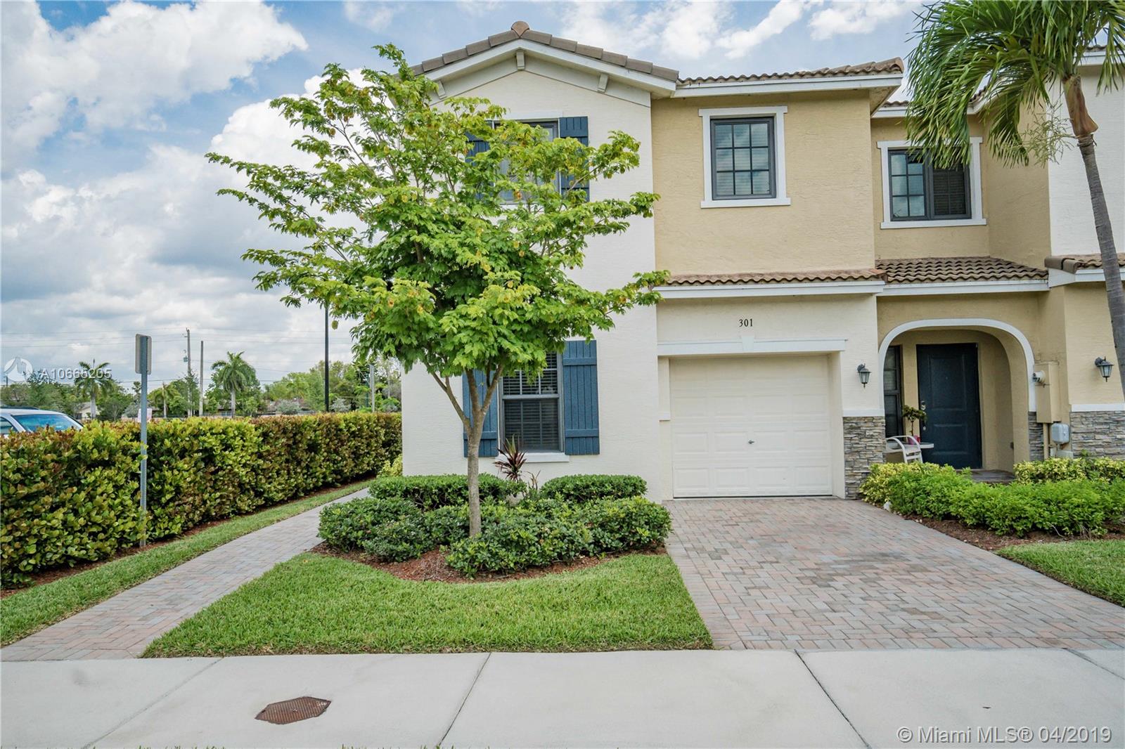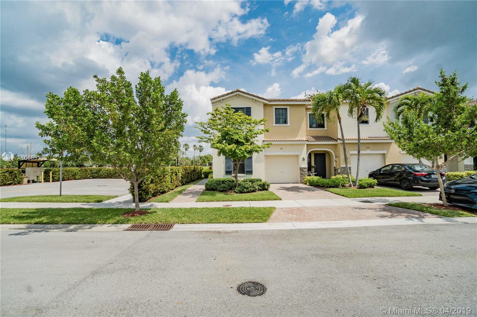 Enjoy some privacy at this gorgeous corner 4 bed/ 3 full bathroom townhome at the end of a well-maintained street. It is located on a quiet cul de sac, next to guest parking, the mailbox, and trails inside Aventura Isles. One bedroom and full bathroom are on the first floor before walking towards a beautiful open kitchen and into the living area. Walk upstairs to a family area before heading to the 3 bedrooms & the large laundry room. Second floor has upgraded carpeting from the developer & home has surround sound system. This home is 5 years old & maintenance includes security, premium cable, high-speed internet, landscaping, home alarm, 3 playgrounds, dog park, jogging trails, & community pool.