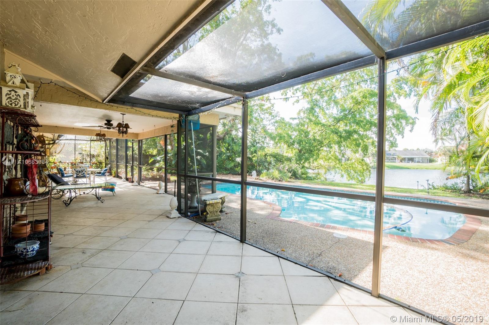 Gorgeous Lakefront Pool Home in the sought after area of Jacaranda. This home truly has it all. Entering the front into the foyer your greeted with expansive vaulted ceilings and a beautiful lake and pool view. Fireplace can be enjoyed in both Living Room and Family Room. Updated Kitchen with cherry wood cabinets look absolutely elegant. Bedrooms are truly spacious, perfect for the right family. Huge screened in patio, perfect for entertaining overlooking the pool and endless lake views encased by large beautiful homes.