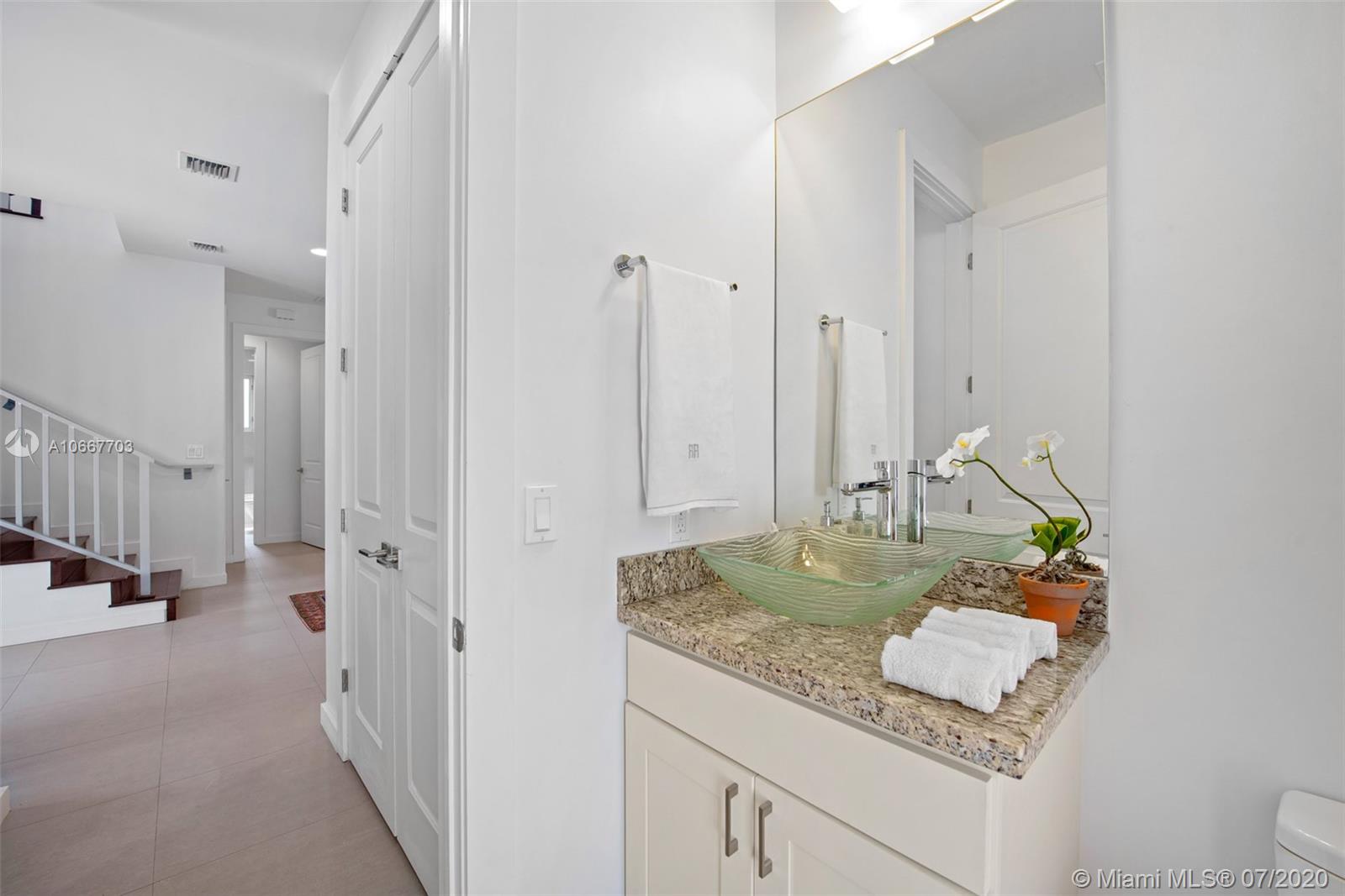 Rarely available contemporary house, newly built in 2013, 4 bedrooms, 4.5 baths, super well maintained, nicely landscaped, in Coral Gables. Great neighborhood and location, walk to Downtown Coral Gables. Lots of upgrades, all stainless steel appliances are GE Monogram, including wine cooler, double door refrigerator and freezer, wall oven and microwave, 5-burners gas stove top and hood, dishwasher. Large size washer and dryer are Electrolux, laundry sink. Design finishes, porcelain and wood floors, no detail spared.