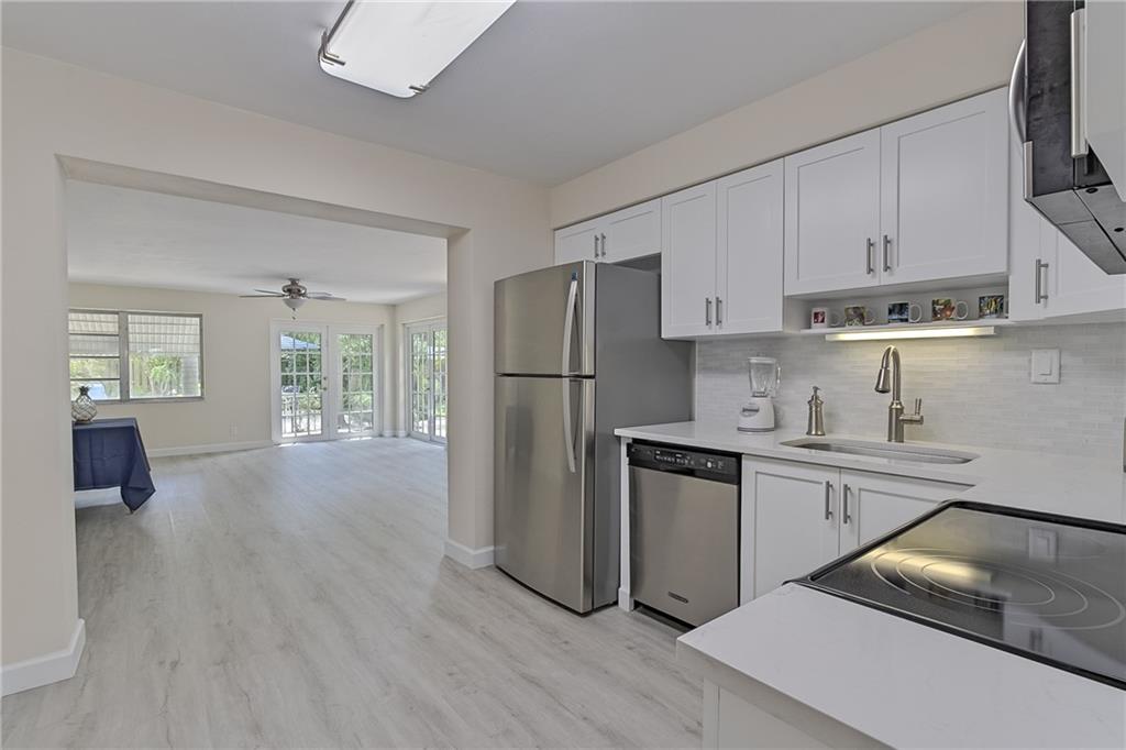 Lovely 4bed/2bath with a three way split floor plan, circular pavered driveway in a desirable Pompano Beach location! Great natural light throughout, beautiful kitchen with quartz counters, stainless appliances & mosaic tile backsplash. Oversized master bedroom with an en-suite bath & walk in closet. Beautiful wood-like flooring throughout with new baseboards, fresh paint, & a modern/coastal feel. Enjoy 2 living areas, a full size laundry room under air & large outdoor shed. The lush, tropical landscaping & large pavered patio are great for entertaining family & friends. Fully fenced yard with 2 double gates is perfect for storing your RV, boat, vintage car, etc. Great opportunity! Tin/metal roof is only 10 years old. The lot is over 10,000 sq ft and located on a great street!