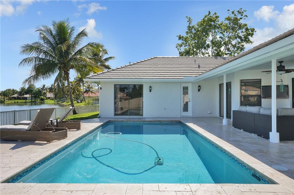 MUST SEE 4/2 home on water in Shenandoah. Home has been fully remodeled including a breathtaking white kitchen with quartz counters and stainless appliances. Throughout the house you can enjoy crown molding, laminate floors, frosted interior doors and fully remodeled guest bathroom. Renovations outside include custom impact front door, paver driveway, a travertine deck with infinity edge to the newly resurfaced saltwater pool. Don’t miss out on your chance to live in this highly desired neighborhood featuring a huge park with new shaded playground, a splash pad, soccer fields, walking trails and even work out equipment. Some extra upgrades include new water heater, new impact garage door and opener, new variable speed AC system, pool pump, custom built shed, fenced in yard and more.