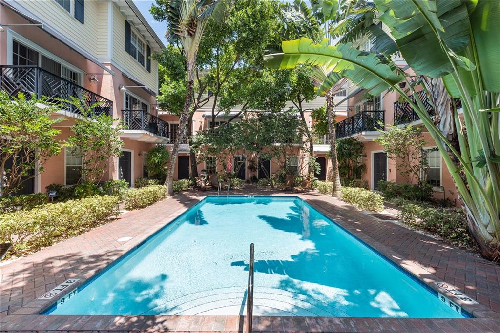 Desirable Flagler Village tri-level townhome. The home features 2 bedrooms, 2.5 bathrooms, 1 car garage and 1 outdoor parking space. The first floor has an office/den perfect for professionals who work from home. Dual master bedrooms with individual ensuites with granite and Italian porcelain tile. A/C unit completely replaced in 2018. Upgraded smart home features including Lutron lighting, Ring doorbell, interior and exterior video cameras with recording. Walkability to Las Olas Boulevard and Federal Highway. Impact sliders leading to balcony overlooking the lush tropical pool. HOA includes security monitoring, pool service, landscaping, insurance and roof. Great property for an Owner or Investor as the unit can be leased the first year. Pet friendly.