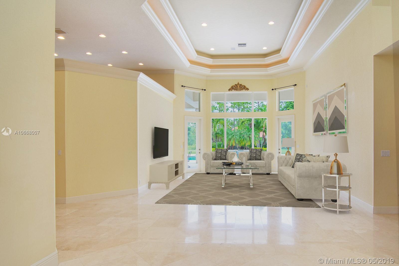 Come Home To This Luxurious 1 Acre Plus Estate, Located On A Cul De Sac. 5 Bedrooms Plus Study/6th Bdrm, 4 and 1/2 Baths, 4 Car Garage, Extra-Long Wide Paver Driveway For Lots Of Extra Parking. Enter The Foyer Of This Beautiful Estate, With Marble Floors And Volume Ceilings. This TRIPLE SPLIT Bedroom Plan Includes A an Oversized Master Bedroom Suite On One Side Of The House, A Private Guest Suite With Its Own Exit To The Pool, On 2nd Split. 3rd Wing Includes 3 Bedrooms With Open Area In The Center, Which Can Be Used As A Play/Game Room/ Library/Reading Room Or Just Left Open For Privacy. The Expansive Patio With Newly Diamond Brite Pool And Spa Are Perfect For Entertaining, Along With A Magnificent Back Yard, For Your Perfect Garden. Whispering Woods is a24 Hr Guard Gated Community.