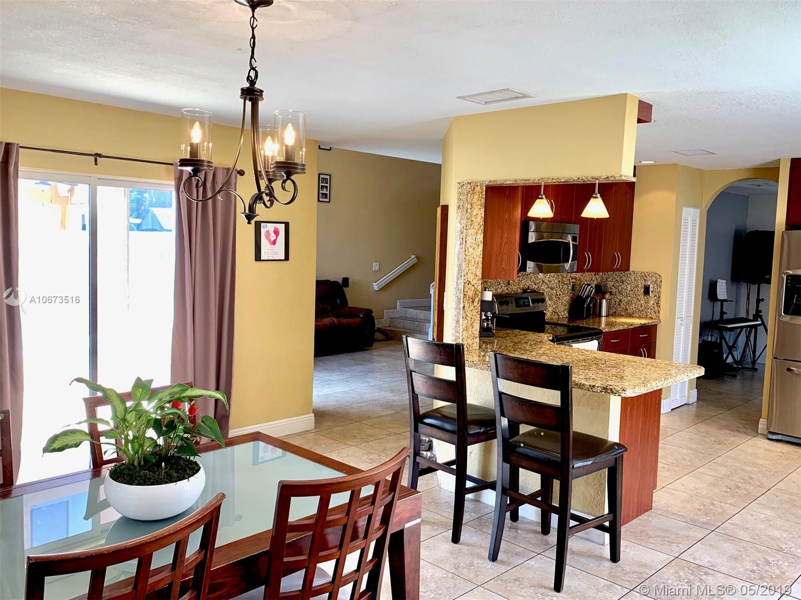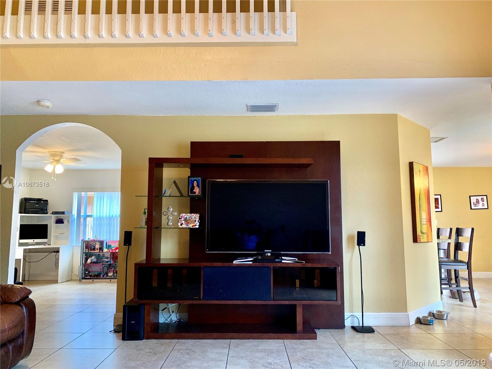 Gorgeous elegant home Located just minutes from Miami Lakes, enjoy the spacious well maintained two storied single family home in the Spanish Lakes community. This beautiful home is perfect for entertaining, spacious first floor layout with open kitchen and formal dining area. Two car garage, washer and dryer and a remodeled back yard. Association fee include Alarm, and basic cable as well.
