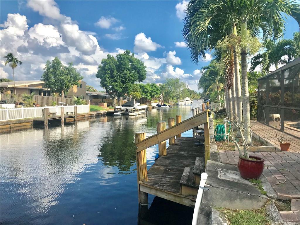Great price for this waterfront ocean access pool home! Impact windows 2014, AC 2011 (under warranty), New seawall footer 2015, Screened pool 2003 pavers 2006. Open concept floor plan with great room. Snack counter in kitchen, and kitchen door leads to stone patio perfect for your herb garden! Enclosed back room with sliders out to the pool and paved patio. Lush landscaping with lychee nut tree, banana and orange tree. 65' on the water with a dock for your boat. Davit pads installed.