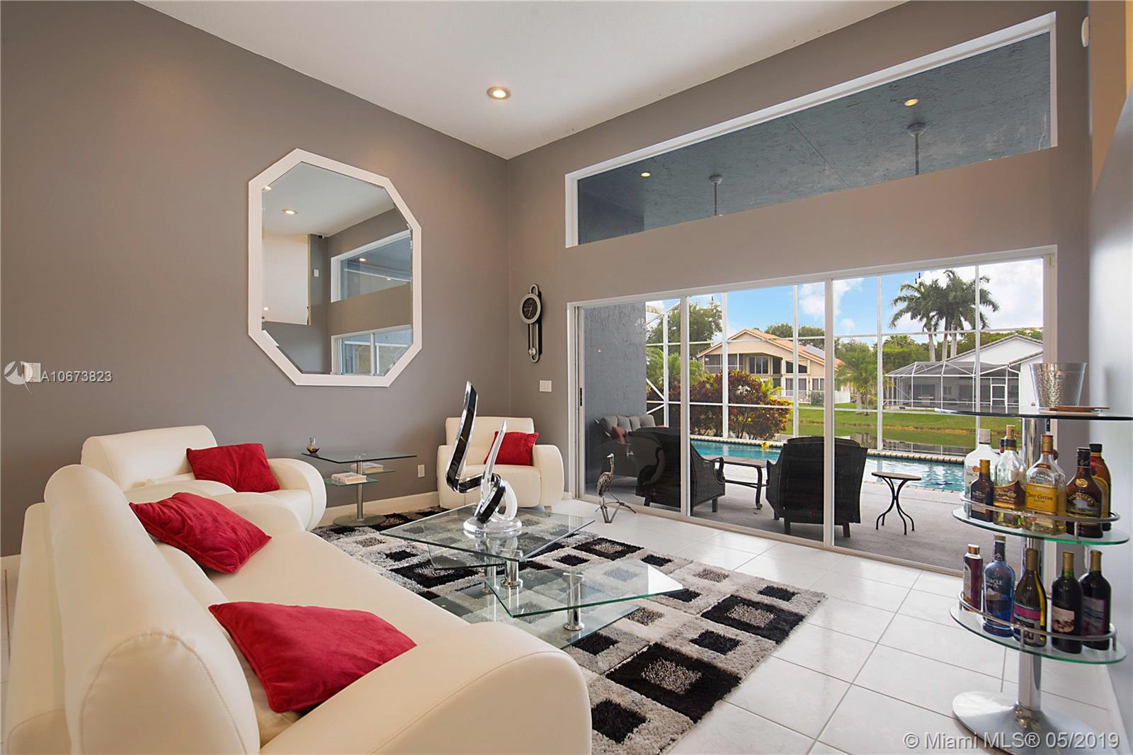 Incredible 5 Bedroom 3 Bathroom home w/ pool & waterviews in North Springs! Dramatic vaulted ceilings greet you as you walk into the home. Spacious triple split floor plan w/ an abundance of natural light. Large living room, formal dining. Open updated kitchen w/ breakfast bar over looking the breakfast nook & family room. Newer SS kitchen appliances. Spacious master suite w/ double walk-in closets. 5th bedroom has walk-in closet & attached en-suite cabana bath. 2nd bathroom remodeled. Interior laundry room w/front load W/D & utility sink. 2012 Roof. Recessed lighting. Recently painted exterior. New pool pump. Video monitoring camera system conveys. Hurricane Shutters. Sprinklers run off canal water! NO HOA. Video tour available! Seller will credit buyer to replace carpets in bedrooms.