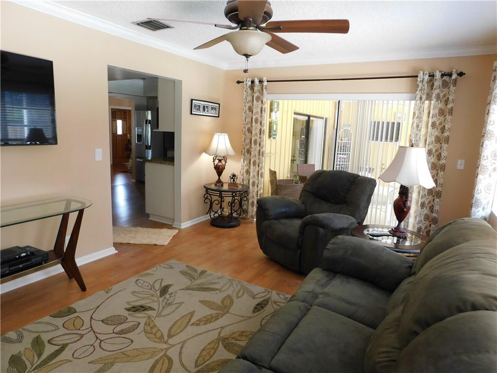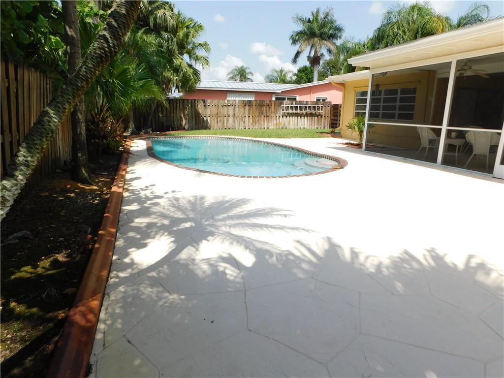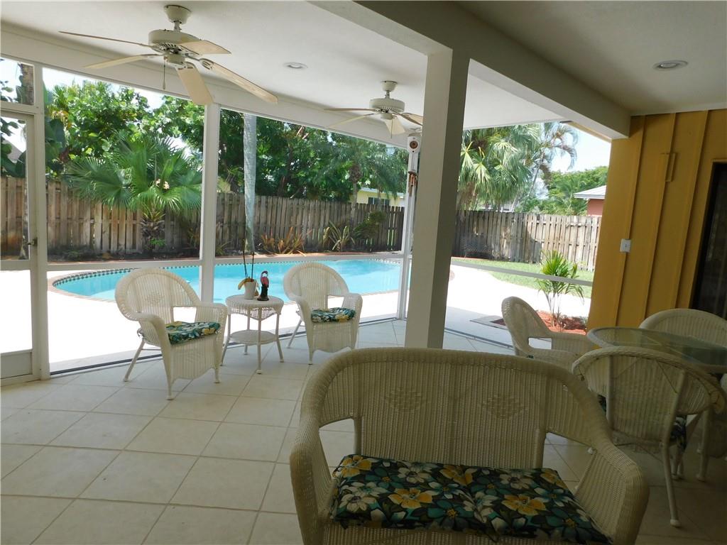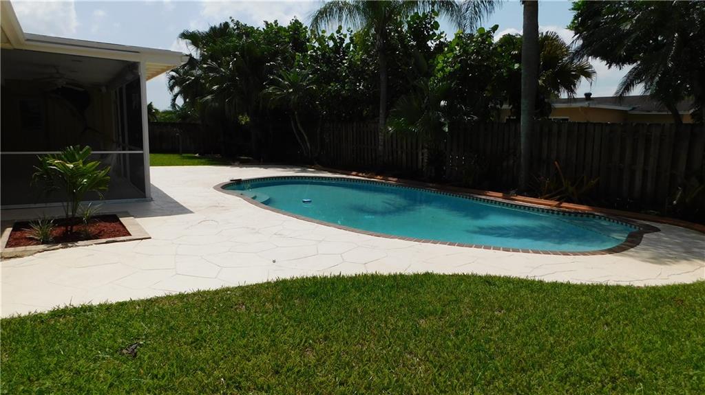 Remarkable home situated one of the largest lots in a family friendly neighborhood with parks and walking distance to the elementary school. BRAND NEW A/C, BRAND NEW ROOF is being installed. Flat roof in 2015. BRAND NEW ELECTRICAL. Beautiful, peaceful screened patio overlooking the big free form pool with plenty of greenery to roam and enjoy. Granite countertops in the updated kitchen with stainless steel appliances. Formal living room and dining room. Three full bedrooms and two full baths with laminate wood floors throughout. 2nd bathroom updated with shower/tub. Master bathroom updated with shower only with modern rock decor. Great home for entertaining or family gatherings.