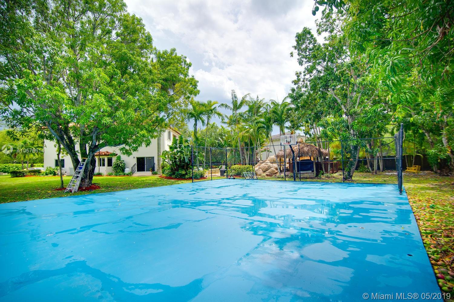 Tropical Paradise Avaliable in Pinecrest! 5 bed 3.5 bath Mediterranean beauty on a builders acre! The home opens to a large living room w/high ceilings & polished marble floors throughout living areas. Large Master w/wood flooring & balcony overlooking the grounds and pool area. Spacious rooms throughout with walk-in closets. Large updated open kitchen with quartz top, stainless steel appliances, Thermedor gas range, & subzero refrigerator/freezer. Family room views of lagoon styled pool, including resort style amenities with water slide, jacuzzi, waterfall, tiki-hut, bar, full basketball court, palm & mango trees...Home also boats a formal dinning, laundry, & theatre room. Built to entertain. Great value, a must see if you're buying in the area!