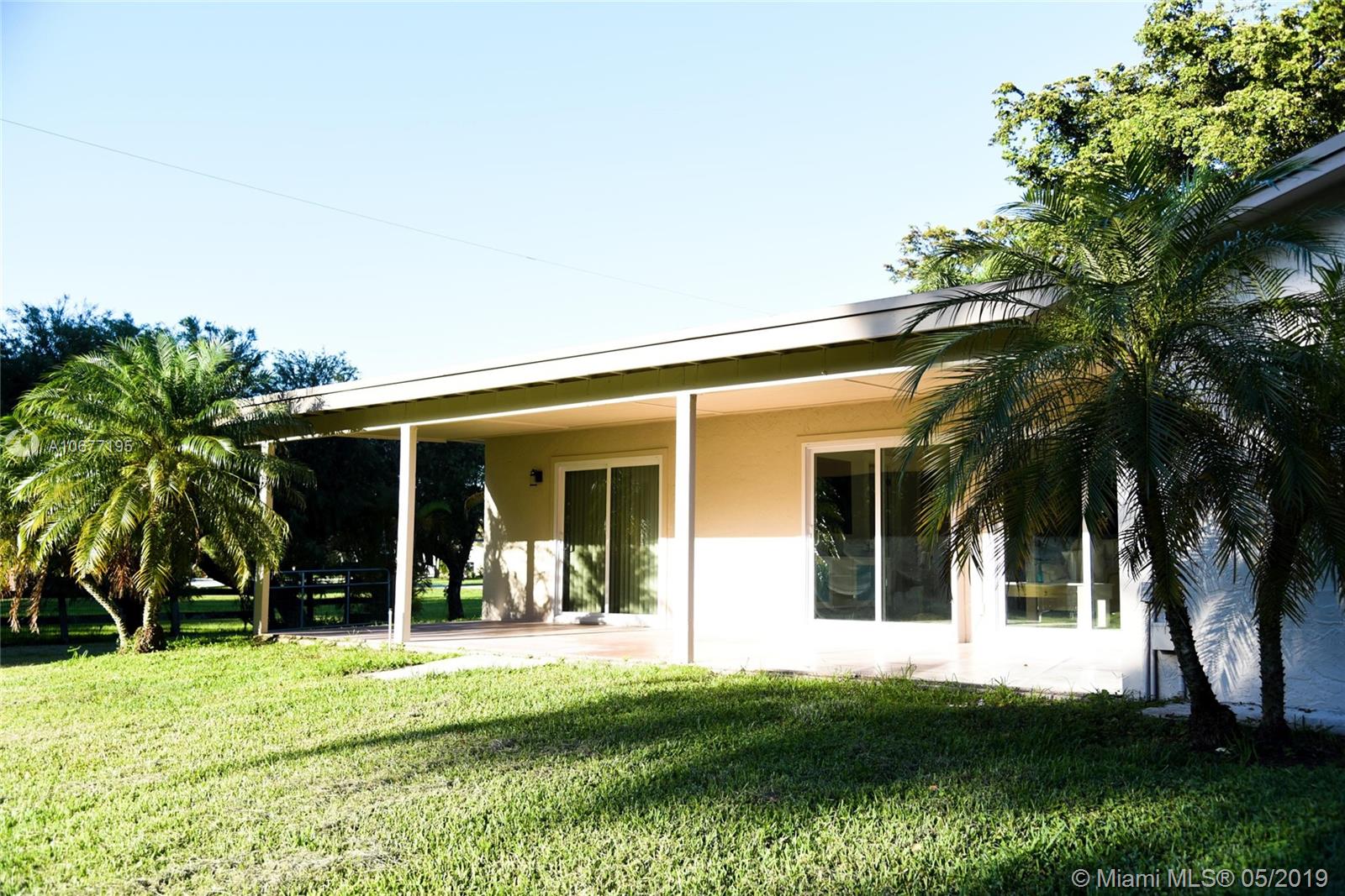 Totally updated 5 bedroom, 2.5 baths ranch on .80 ac fully fenced in lot with pond and room for a horse stall ! House is in like new condition totally updated with brand new custom kitchen cabinets and quartz counter top. This gourmet type kitchen has SS appliances and opens up to a large dining area and a huge family room that has 2 large french doors ( impact ) opening to a huge patio ideal for entertainment and with a relaxing pond view! Travertine floors in living area and wood floor in the master and brand new laminate floors in all other 4 bedrooms. Remodeled baths and crown moldings t/out Freshly painted in and out. Horse lovers must see this totally updated house !