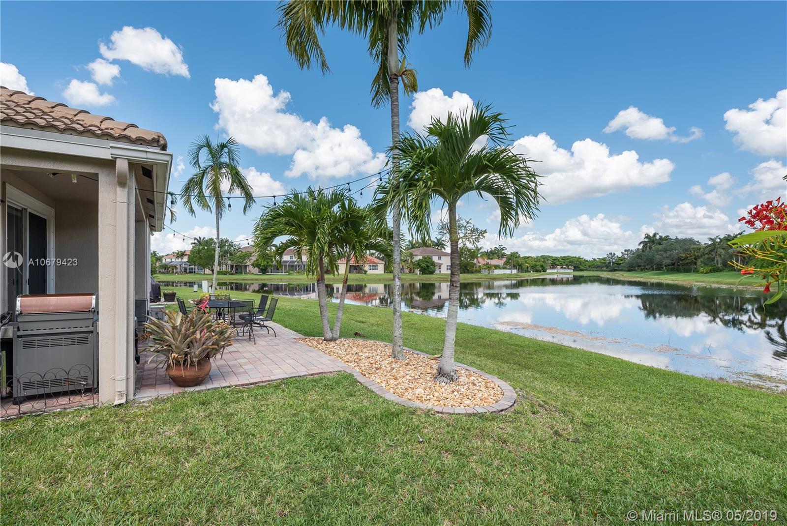 Beautiful home! 4 bedrooms, 2.5 bathrooms with the master bedroom located on the first floor with living room, dining room and family room. Room for a pool. Spectacular lake view for you to enjoy amazing sunrises and sunsets. 2 car garage and yes also 2008 roof, A/C unit 3 years old, accordion shutters second floor. The kitchen has all stainless steel appliances, gated community "Savanna" with resort-style amenities, heated Olympic lap pool, family and kids pools and water slide, BBQ area, mini golf, playground and more. Low maintenance fee $128 monthly. Nearby Weston Regional Park, Publix, restaurants, stores...Excellent schools Manatee Elementary, Falcon Cove Middle and Cypress Bay High School.