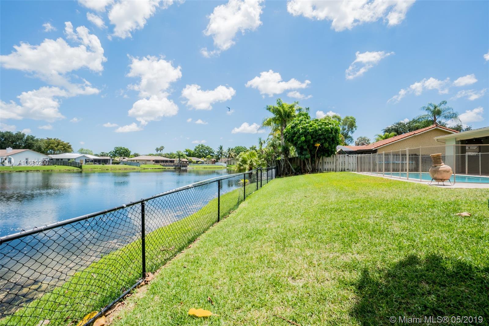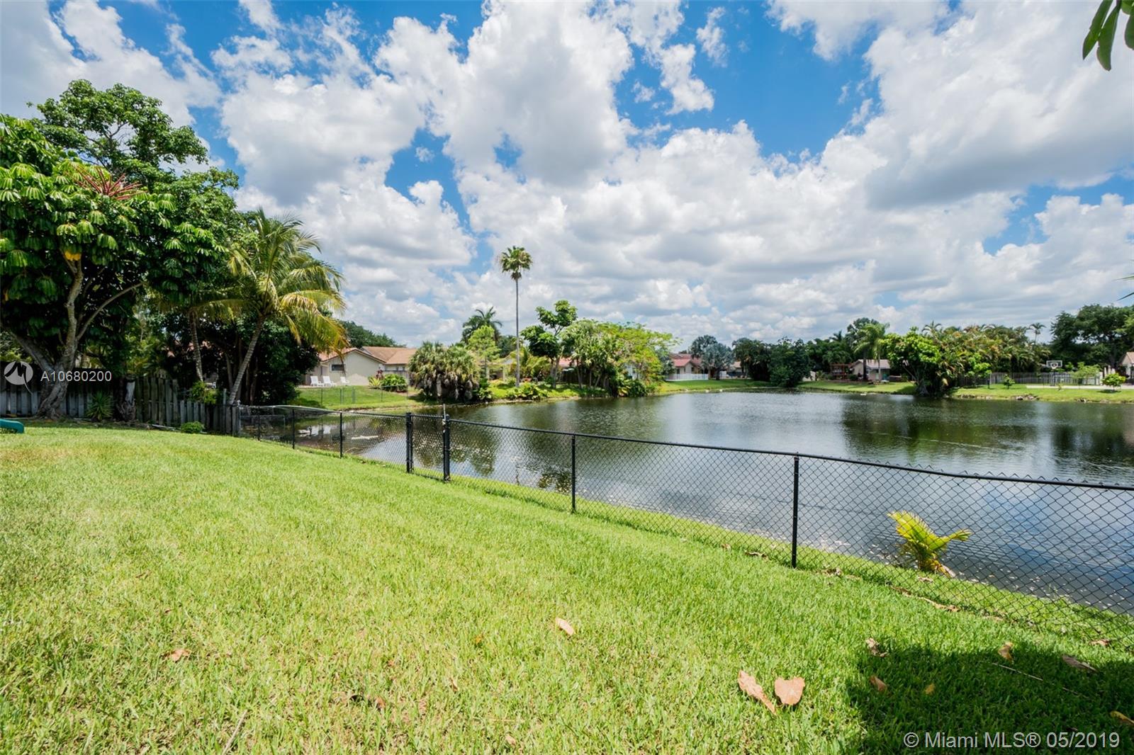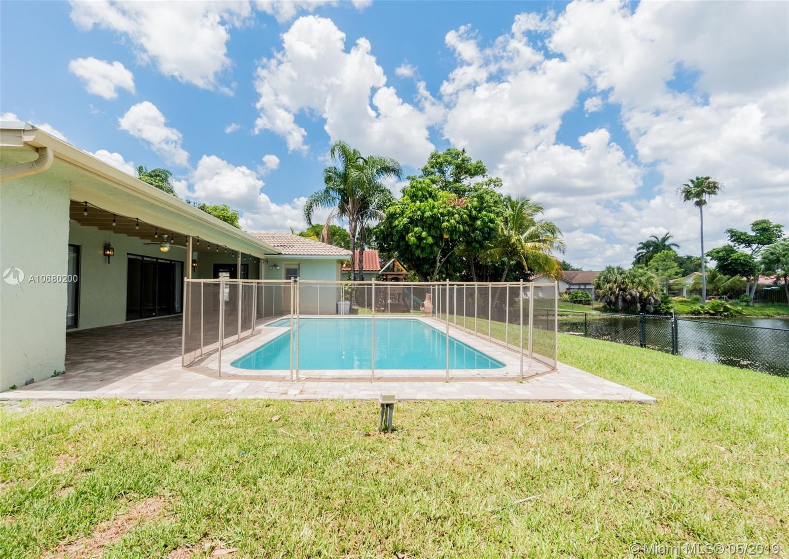 Gorgeous 4 bed 2 bath home in highly sought after Jacaranda Lakes! This beautiful bright and airy home boasts an open layout with tons of natural light, enormous living room and bedrooms, updated kitchen with S/S appliances and modern bathrooms. Freshly painted throughout in a neutral color. This home has wood look-alike tile throughout, a formal dining area and a backyard for entertaining with pool and lake for fishing! A/C from 2017 and accordion shutters throughtout, impact windows in front. Double wide gate is perfect for your boat or toys! Turn key just bring your toothbrush!