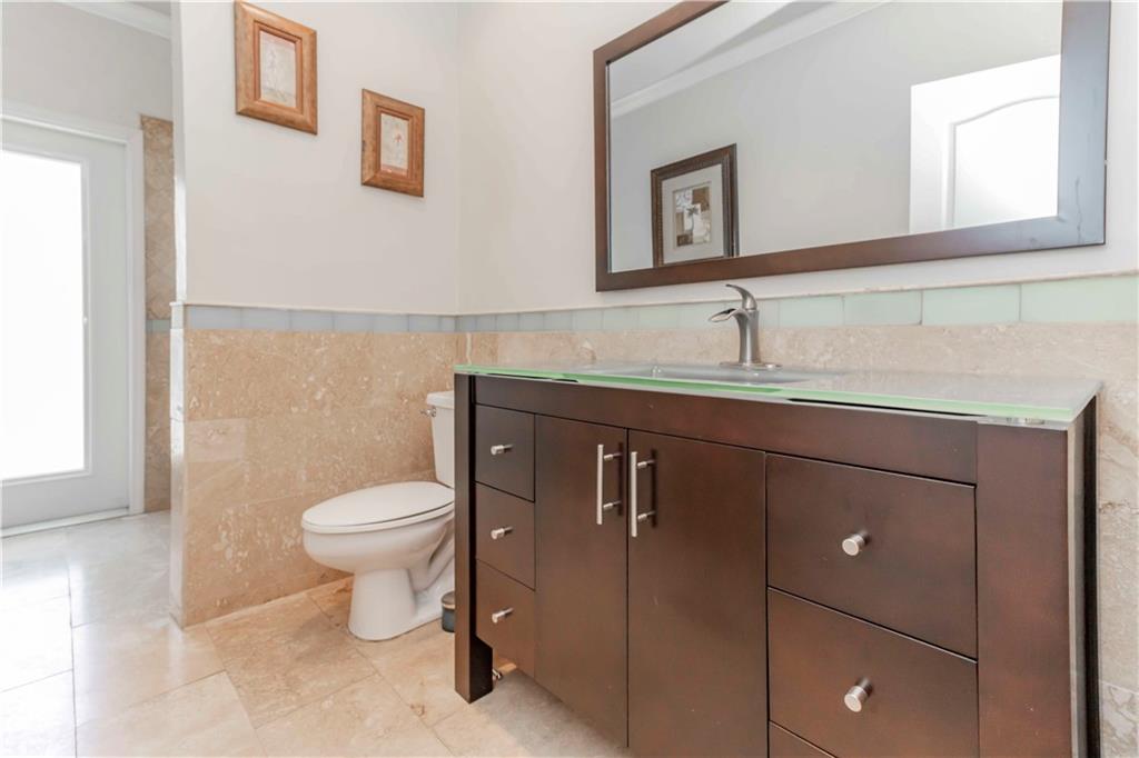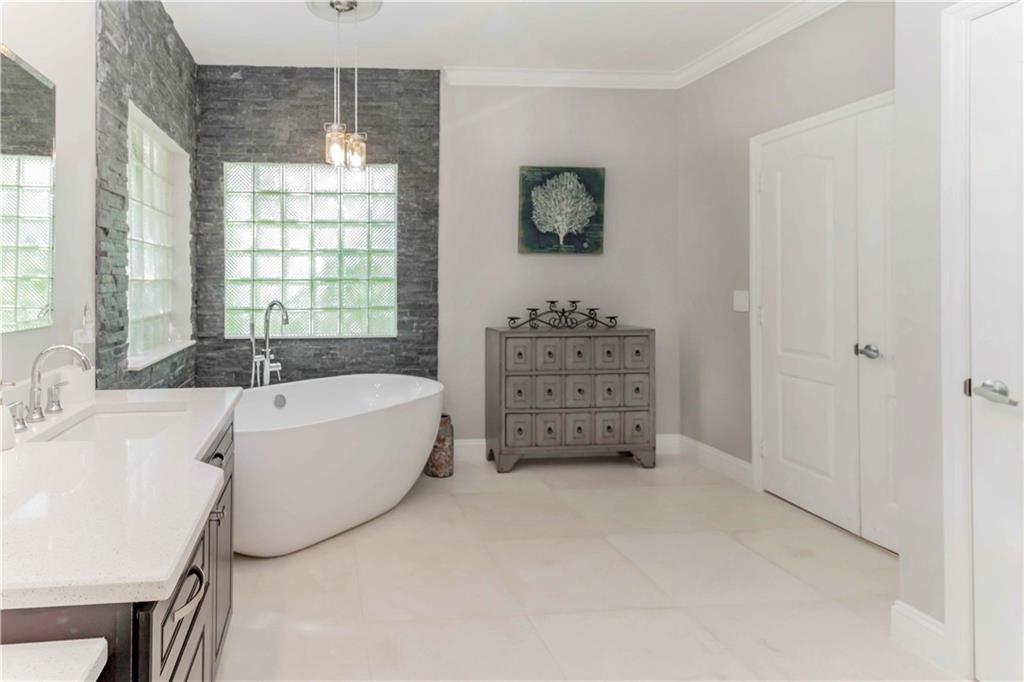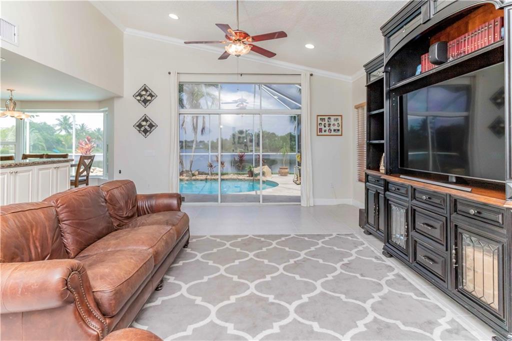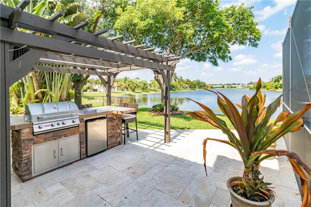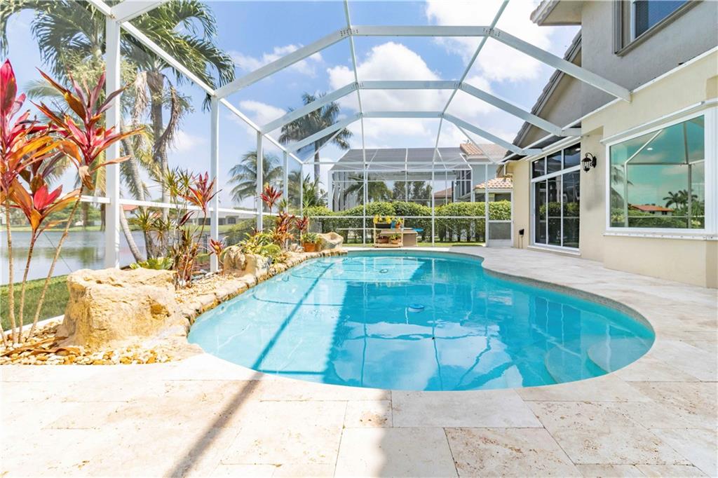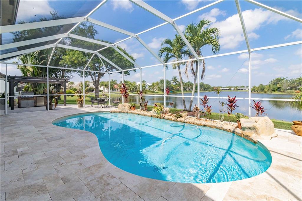 Beautiful lakefront 4 bed, 3 bath pool home w/ a huge lot! Home has been newly remodeled and features a rare split plan w/master downstairs & 3 additional bedrooms & loft on the upper level. All bedrooms and loft area feature new hardwood flooring. Master Bath has been completely remodeled with limestone flooring, Kohler & Toto fixtures, free standing soaker tub & LED lighting. The additional 2 baths have been upgraded w/marble & travertine flooring, new cabinetry and granite countertops. Kitchen was remodeled in 2016 with granite countertops, wood cabinetry & new Samsung appliances. Newer barrel tile roof installed 2010 & 2 new Central AC units in 2016. Screened-in salt water pool with travertine deck, covered sitting area, and extended patio overlooking the beautiful lake.