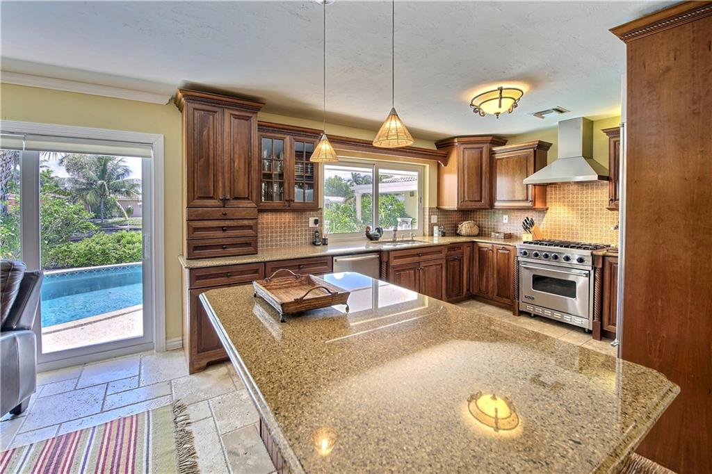 Have it all in Coral Ridge Isles - Gorgeous & completely remodeled waterfront! Brand New Roof. Amazing chef's kitchen w/Viking range, Subzero & Miele stainless appliances, granite counters & large breakfast bar/island. Family room adjoins kitchen & opens to pool & patio. Spacious master suite w/spa like bath & ample walk-in closet. Master bath w/soaking tub & separate shower. Travertine in Opus pattern throughout. Carpet guest rooms. Eurotech impact windows throughout & 3 sets of new impact sliders open to pool & patio. Private covered outdoor living area & private pool area. Salt water pool. Lush landscaping, paver drive & paver courtyard entryway create wonderful curb appeal. Best street in neighborhood w/no condo building in Cul-de-Sac. A+ location, close to Beach, Best Schools & Shops!