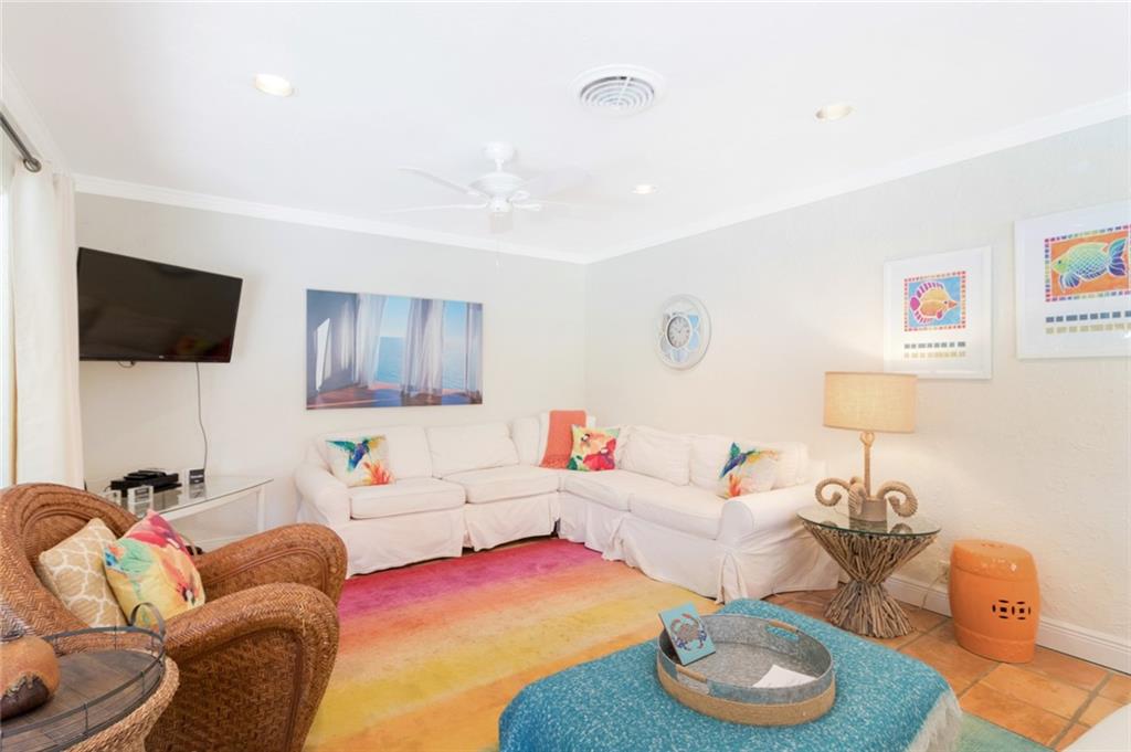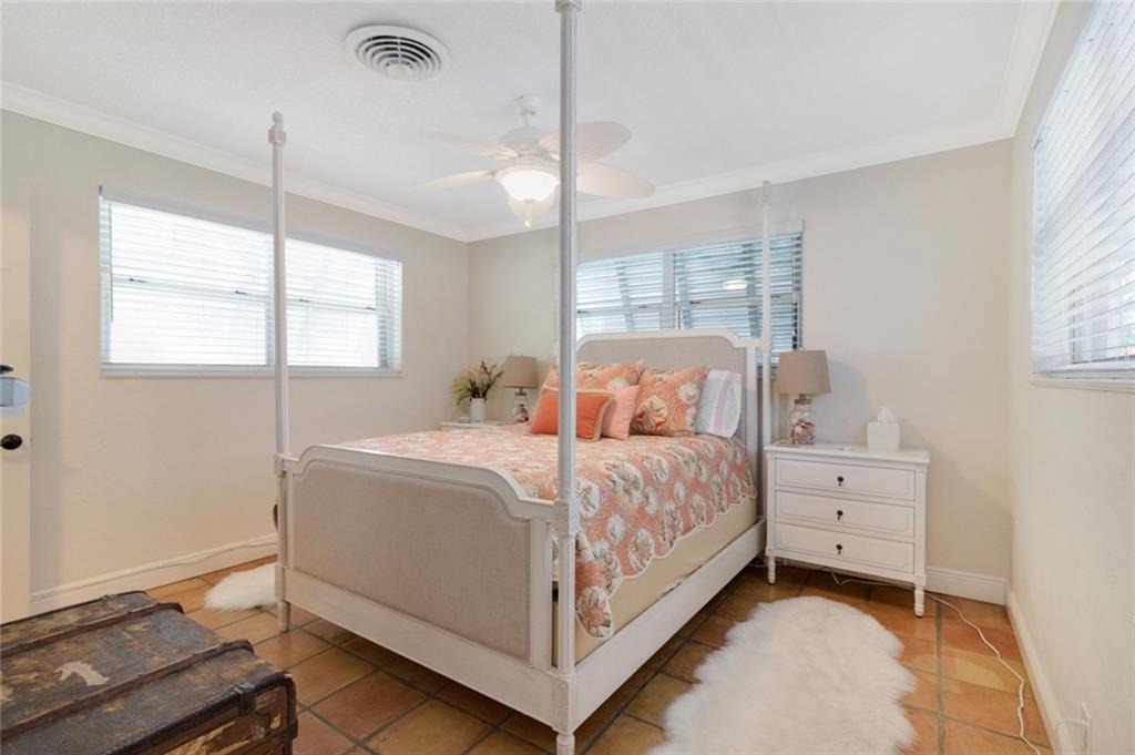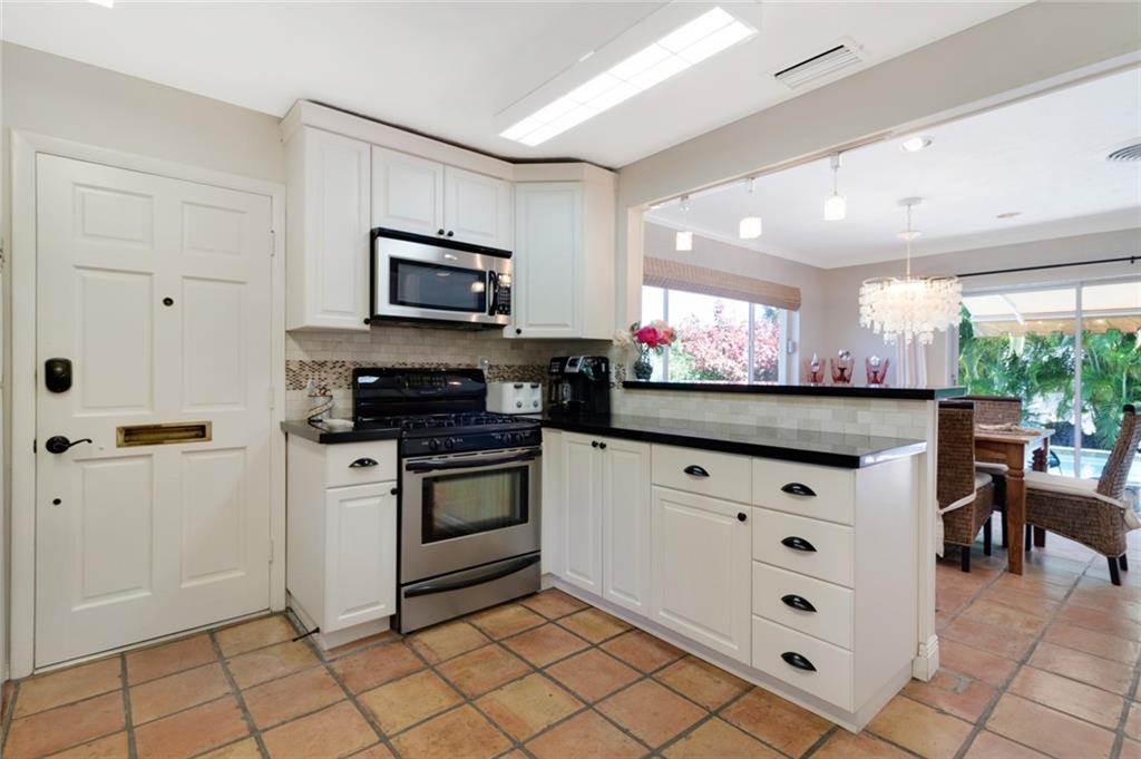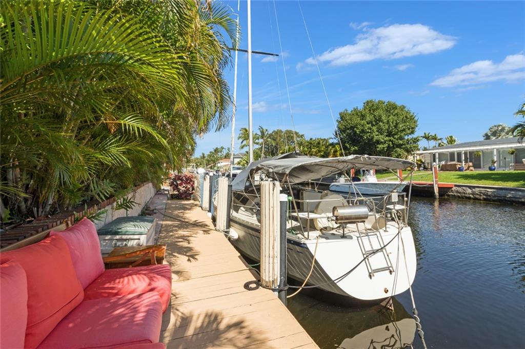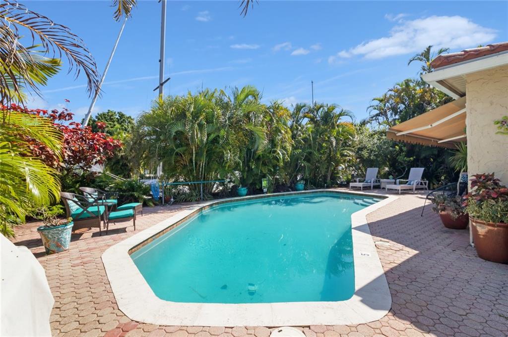 You'll love this vintage sweetheart! This two bedroom, two bathroom waterfront bungalow has a private backyard with a solar heated pool, and 65ft of water frontage with ocean access & NO FIXED BRIDGES. This light and bright home features an updated, open kitchen with custom white cabinetry w/pull-outs, granite countertops and stainless steel appliances. Home has tile floors throughout, crown molding, large closets with built-ins, modern bathrooms, and pot lighting in the living areas. Enjoy mature gardens in the front and back yard that features an covered awning with a seating area and lots of outdoor space for entertaining, the epitome of the South Florida lifestyle! Currently being leased as a legal AirBNB. NOTE: Under Mexican tile terrazo floors.