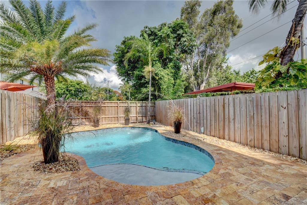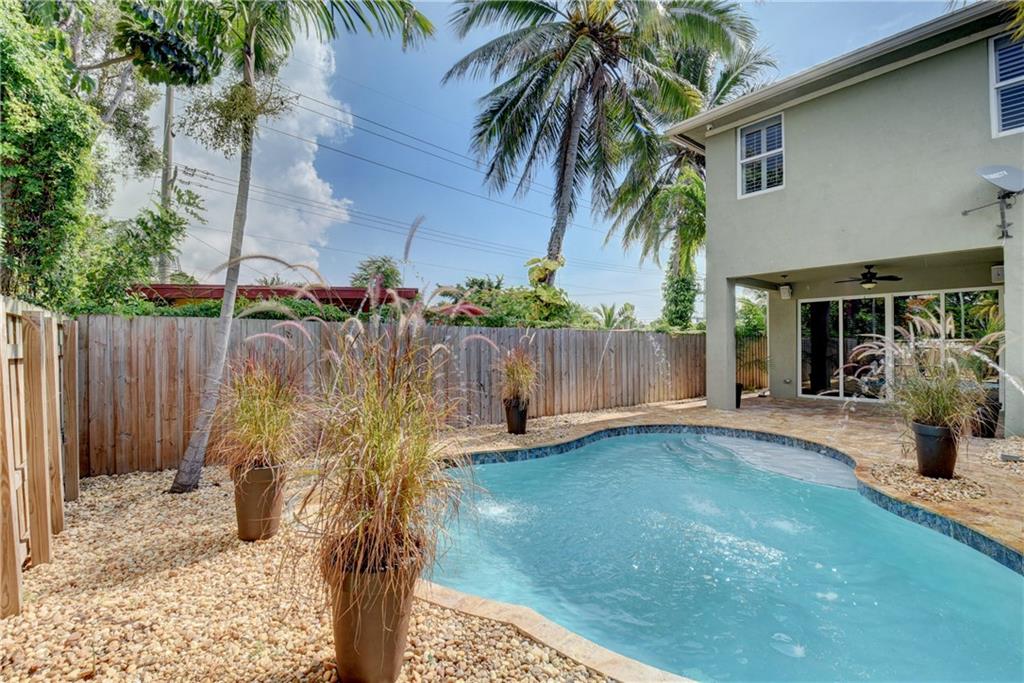 Immaculate tropical townhouse with its own private salt water pool! Perfect open floor plan that everyone wants and a modern kitchen for someone that likes to entertain. Over 2300 sq ft inside, master bedroom is large enough for a full sitting area and plantation shutters throughout most of the house. Outside your find 1000 sq ft of patios in front and back overlooking your own tropical paradise in your private fenced yard. Located in between Wilton Manors and Las Olas you'll never lack for someplace to go!