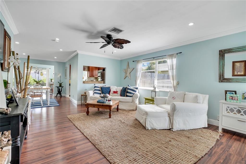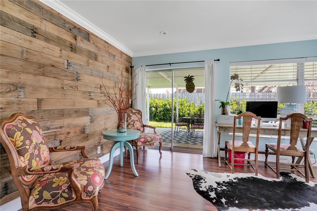 The cutest 2/2 home east of I-95 that is close to the beach, shopping, dining and entertainment! From the moment you enter, you are welcomed by tons of natural light and easy comfortable living. Open family/dining space leads you to a sunny Florida room featuring a shiplap accent wall and overlooks the patio and backyard. Master bedroom has an amazing walk in closet, and both bathrooms have been tastefully updated. Coat closet by the front door has been converted to the most clever use of space for a printer and work space! Kitchen has stainless steel appliances, A/C 2018, hot water heater 2012 and updated electrical panel, one car garage. A must see adorable space that you will definitely want to call home!