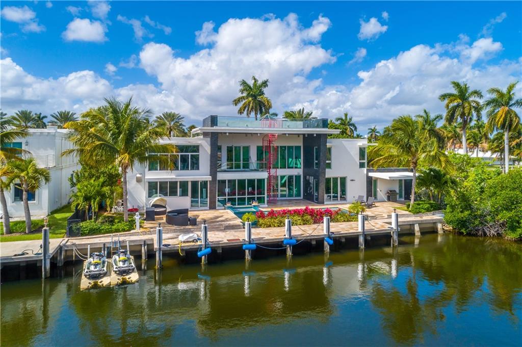 Custom designed modern luxury residence on a wide canal in the Las Olas Isles, built in 2015, dock up to a 90' yacht. Top-of-the-line chef's kitchen, gas fireplaces, elevator, integrated lighting & sound systems, pyramid skylight, impact windows, 4 energy efficient A/C's, motorized blinds, an outdoor oasis featuring a beautiful rooftop deck w/ artificial grass. Walking distance to restaurants and the beach. 6 beds - 7 baths - 2 half baths - 2 laundry rooms - office - theatre room - 3 car garage