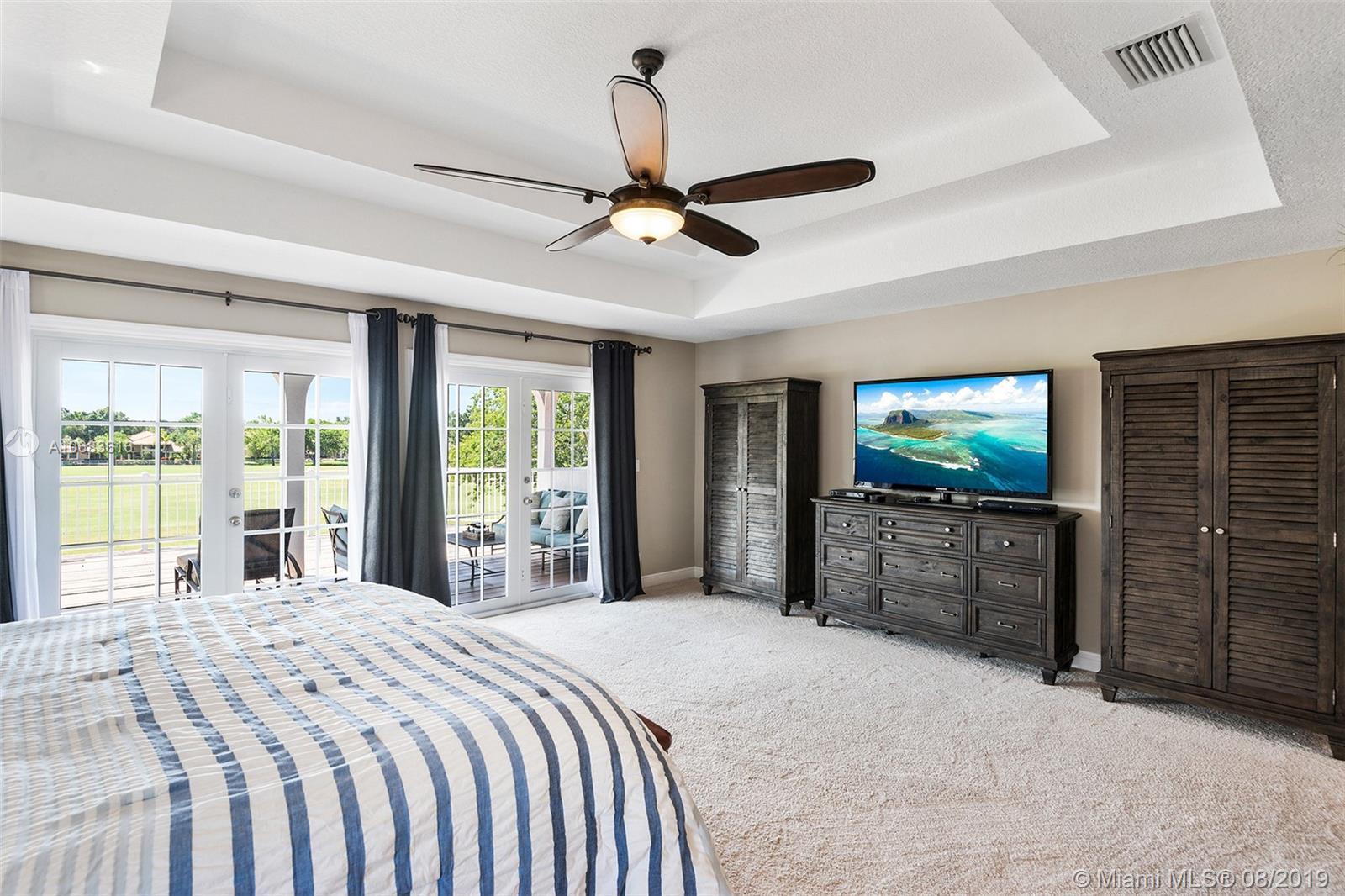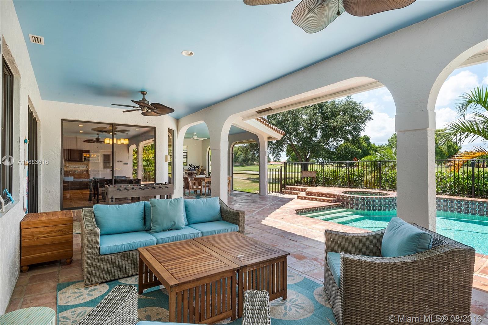 CORPORATE RELOCATION with Direct Golf Course Views and Mediterranean charm. NEWER ROOF, granite countertops, stainless steel appliances, sparkling pool + spa. Incredible outdoor living area. Kitchen features walk-in pantry and views of the fairways. Open-concept floor-plan, three A/C zones, BRAND NEW hot water heaters, 3-car garage + circle driveway. This home is PERFECT FOR ENTERTAINING. Split floor plan downstairs with 4 full bedrooms + 3.5 bathrooms, private master retreat located upstairs. Master bathroom boasts dual sinks, roman tub + remodeled shower. Desirable neighborhood of Eagle Trace features walking paths, community pool, clubhouse, playground and guard-gated community!