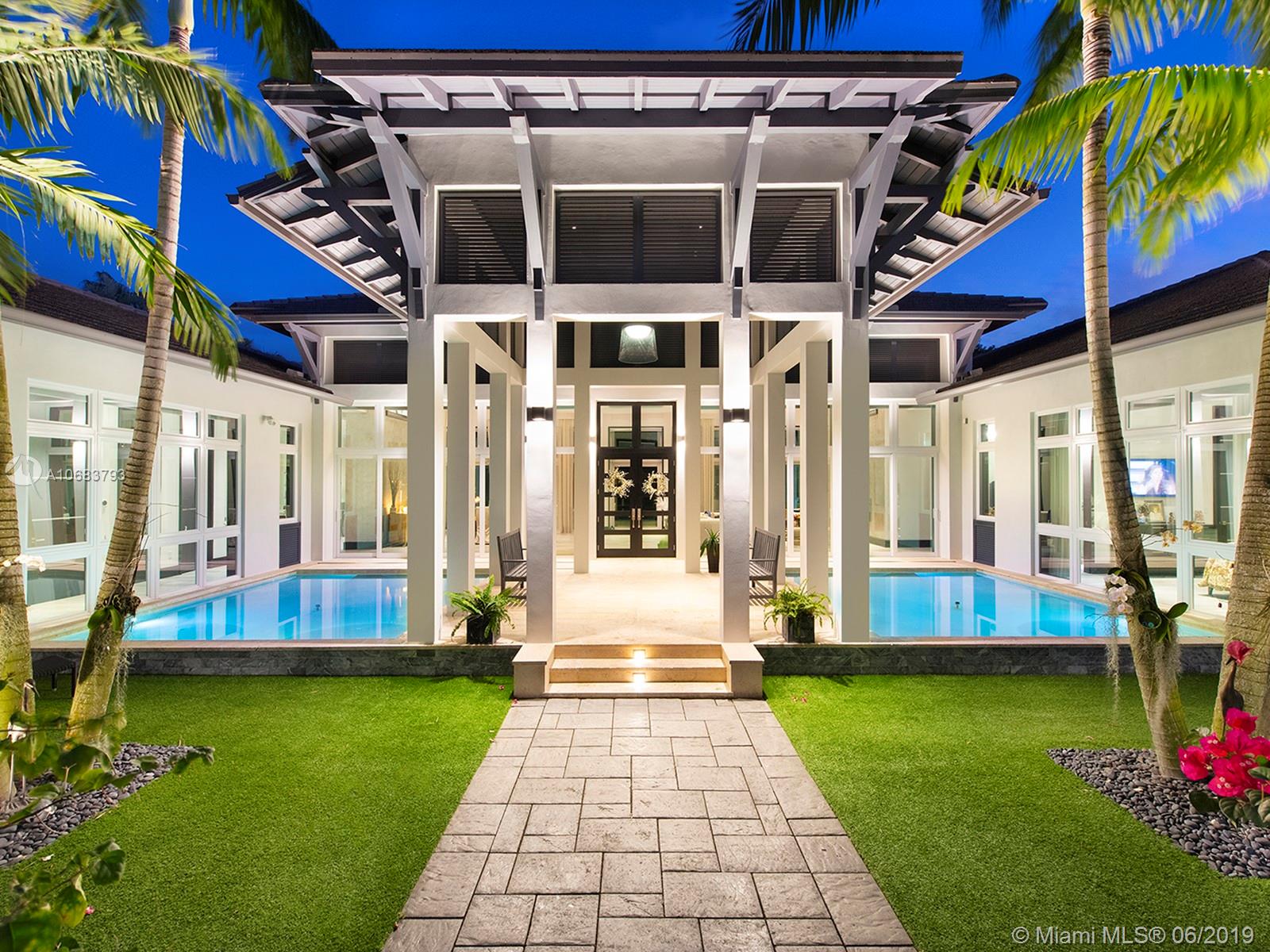 Tropical Oasis! The ultimate resort sanctuary! Superb, unique and artistic architectural design. Unique, exquisite with finest finishes! Stunning 24' soaring ceiling, luxurious designer flooring. Features stone, marble, and tile. Unparalleled quality with sleek modern and elegant elements throughout. Gorgeous and open vistas with every turn! Great floor plan. Fabulous gourmet chef's kitchen. Lavish master suite with sumptuous bath! Magnificent lush grounds with professional landscaping and Feng-Sui water features! Extraordinary blending indoor-outdoor living. Spectacular outdoor entertaining with inviting large heated pool, a fire-pit sitting area equipped with complete cabana and summer kitchen! Putting greens and much more! Truly one of a kind! Sensational!!
