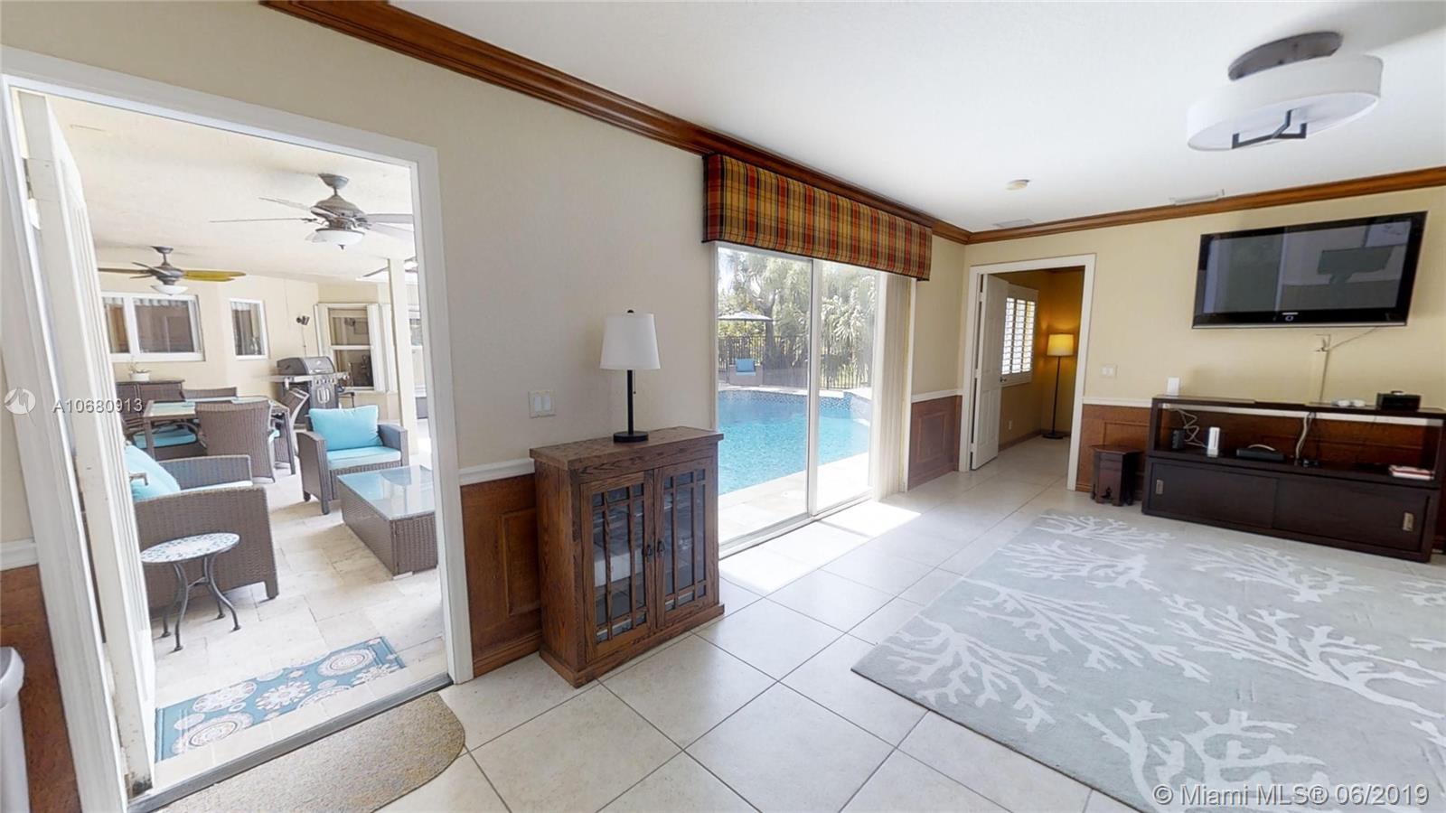 Beautiful and unique lake home with a pool in Sunset Springs. 5 bedroom, 3.5 bath where the 5th bedroom and 3rd full bath are in a full in-law suite with sitting area, kitchenette and separate entrance overlooking the pool. Updated kitchen with granite counters, large pantry and stainless steel appliances. All bathrooms are upgraded. Marble floors throughout the house living area. 2007 roof. Custom wood bar. Full of upgrades: impact windows & accordion shutters combination, power generator, recently resurfaced pool with salt system, LED recessed lighting, new water heaters, reverse osmosis water filtration system, widened driveway with pavers, camera door bell, sprinkler's water from the lake. Extra large corner lake lot across the community's play ground. A definite must-see!.