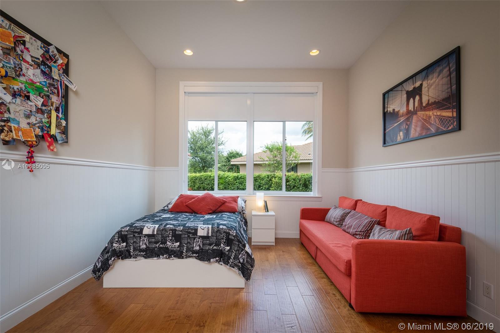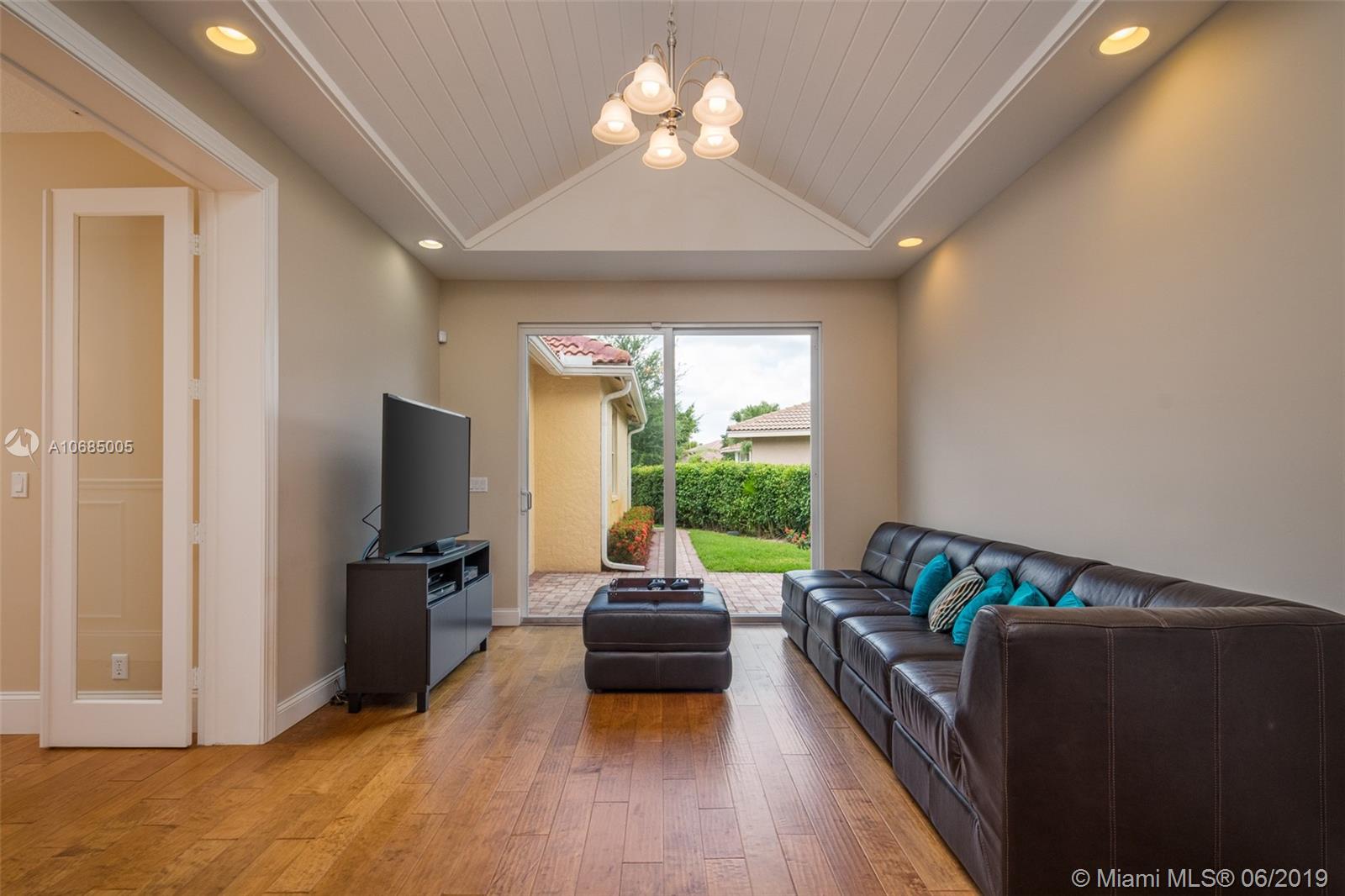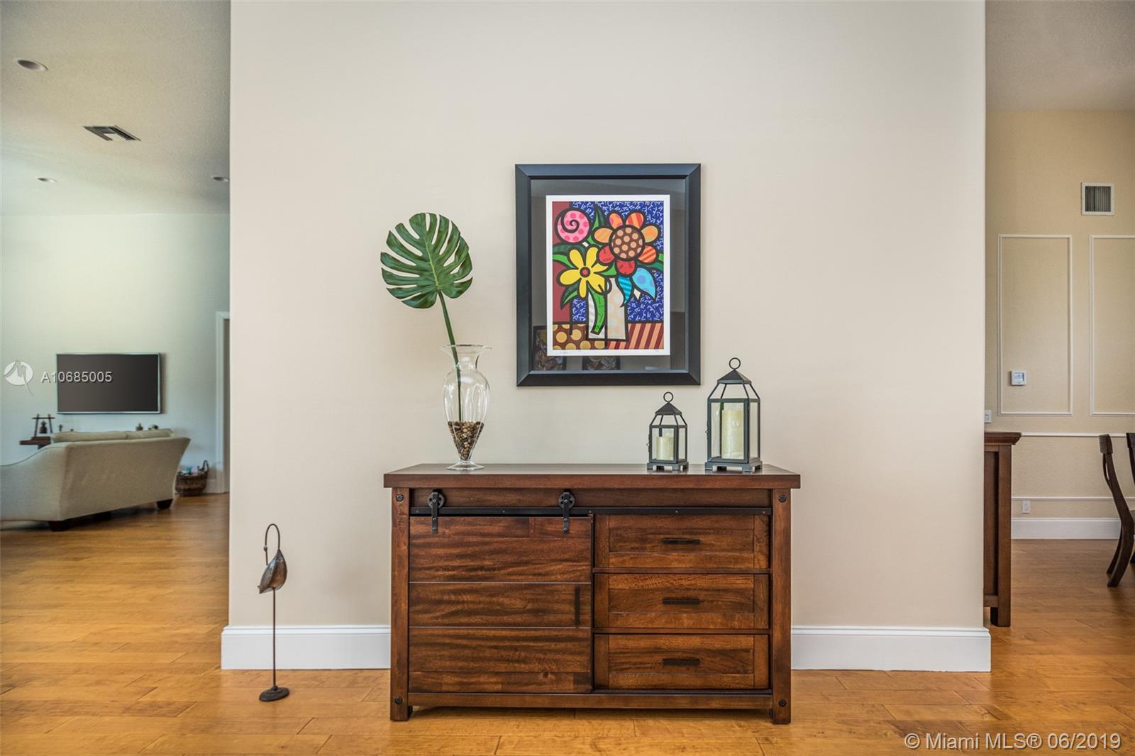 This is the one you have been waiting for. Expanded custom one story home on a private oversized 17,796 square foot lot. Enjoy long lake views with newly renovated heated pool - chlorinated but could be salt*cascading spa*spacious covered paver patio*summer kitchen*fully fenced*across the street from the community park. Chef's Delight kitchen*marble center island 9x5 with seating*top of the line Stainless Steel Appliances*Custom wood floors*Master bedroom with custom built in closet*glass doors*shoe closet*Marble Master Bath*Spa.Newer addition 2010 with full impact glass protection. Kid Wing includes large playroom*guest room*office* Newer Roof*Newer A/C's*Accordions*Fireplace
