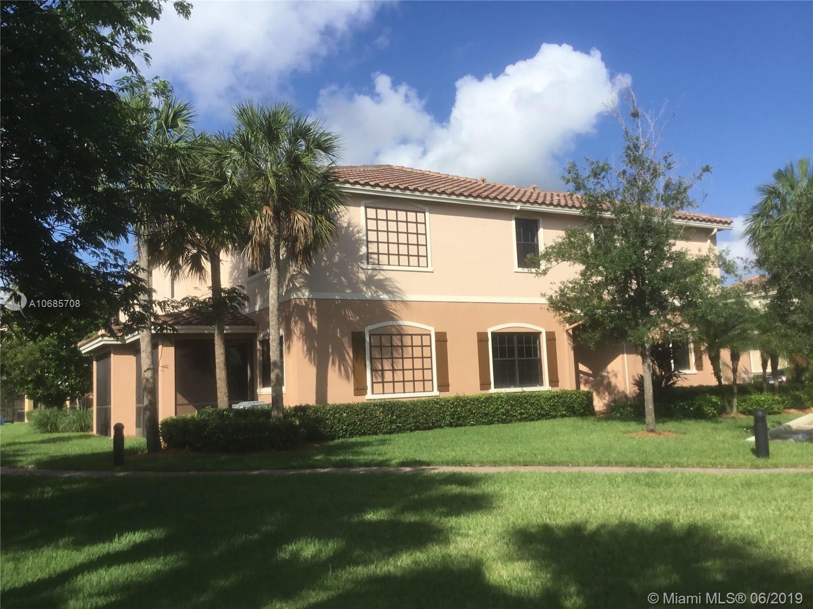 Exceptional End - Unit Townhome in Desirable Gated Community -This 3 Bedroom + Den, 2 1/2 Bath has never been lived in and is Available for immediate occupancy. This corner unit offers extreme privacy on 3 sides. The many Features included an oversized 2 car garage. Hurricane impact windows & doors throughout, Full size designer style kitchen with island, and situated directly across the street from Development Resort Style Pool. Vacant and easy to show. Please Allow 24 HRS for Appointment.