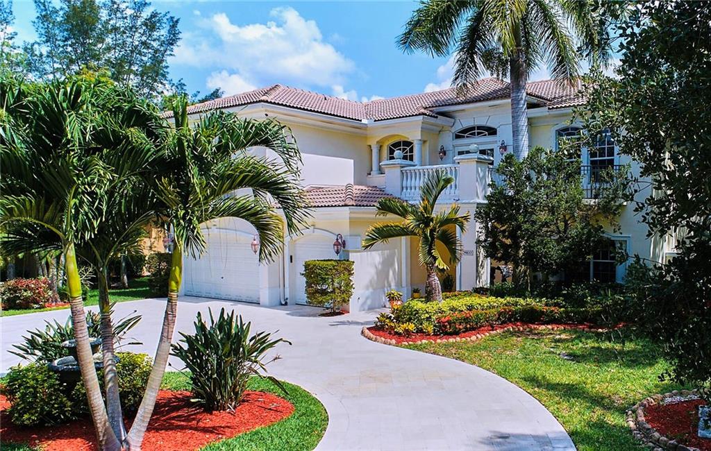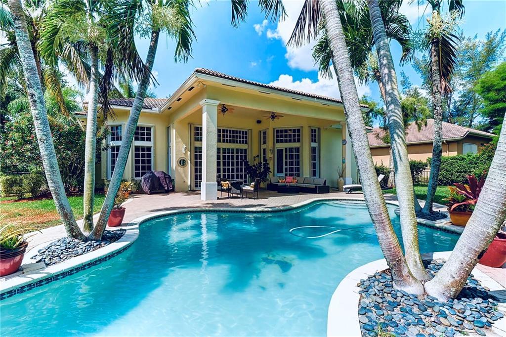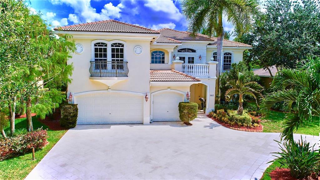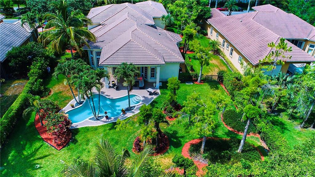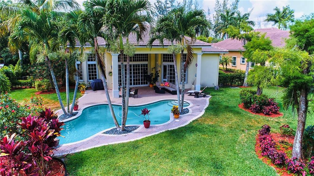 This elegant home w/spacious flowing layout is priced to account for needed TLC. 5 bedroom 4 1/2 bath - mother-in-law suite, office, tri-split floor plan, flowing wood staircase, lush private backyard w/heated waterfall pool. 1/2 acre lot. Decorator tray ceilings, crown moulding, marble & wood floors throughout, surround sound, white Italian marble driveway, wired for generator, Invisible dog fence, accordion shutters, master w/2 walk in closets, dual vanities, large whirlpool tub w/separate walk in shower. Upstairs area w/loft, 3 bedrooms, 2 baths w/large closets & wood floors. Small guard gated community w/mature trees, quality construction, tennis courts & low HOA fees. No long lines at guard gate. Near Parkland Dog Park & Equestrian Center. School buses come inside community!