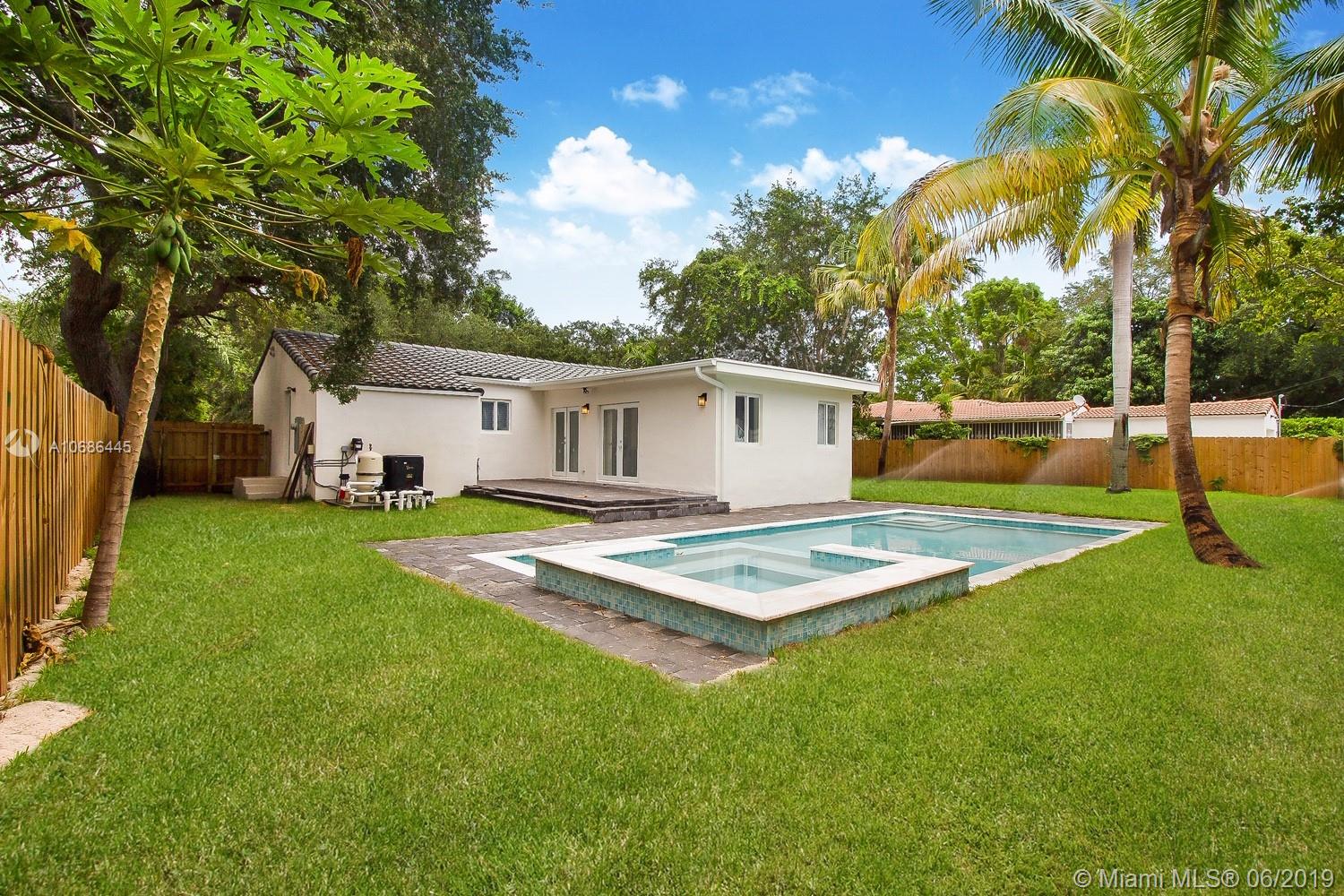 Gorgeous one story Mediterranean 3B/3B House in the heart of highly desired Miami Shores. This architecturally- rich home has been totally renovated, including New Kitchen and Bathrooms; New Hurricane Windows and Doors; New Plumbing, Electrical and A/C; as well as a new roof. Spacious fenced backyard with Fabulous Pool, Deck and garden area.