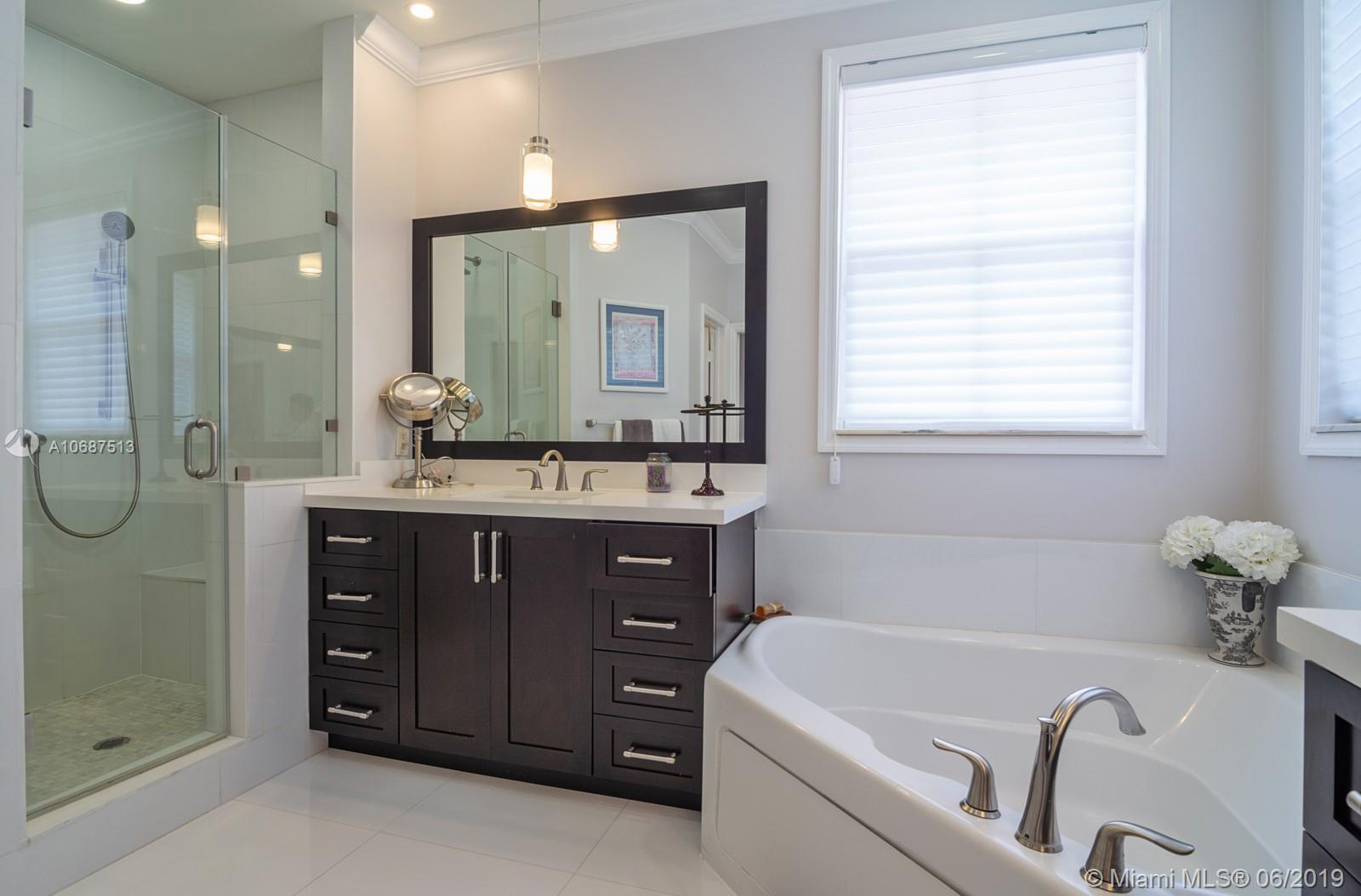 Stunning Estate Home in Prestigious Nautica Community! Beautifully remodeled this 4 Bed, home has Porcelain Tile on first floor and solid hardwood floors on 2nd. Dbl Door Entryway, Volume Ceilings Front & back patio's, Accordion Hurricane Shutters. Large Gourmet Kitchen with Informal dining, Custom Cabinetry, Granite Counters and SS Appliances. Spacious Floorplan with Formal living & dining areas + Family Room. Upstairs boasts a Huge Master Suite with balcony, separate sitting area, walk-in closets, a Beautifully Remodeled Spa like bath with separate shower & Tub, wood cabinetry and granite counters. A fully fenced back yard Oasis with covered Patio areas & Custom Gazebo. Guard Gated Community with excellent clubhouse and amenities. close to Top rated Schools, Highways, Shopping & Dining.