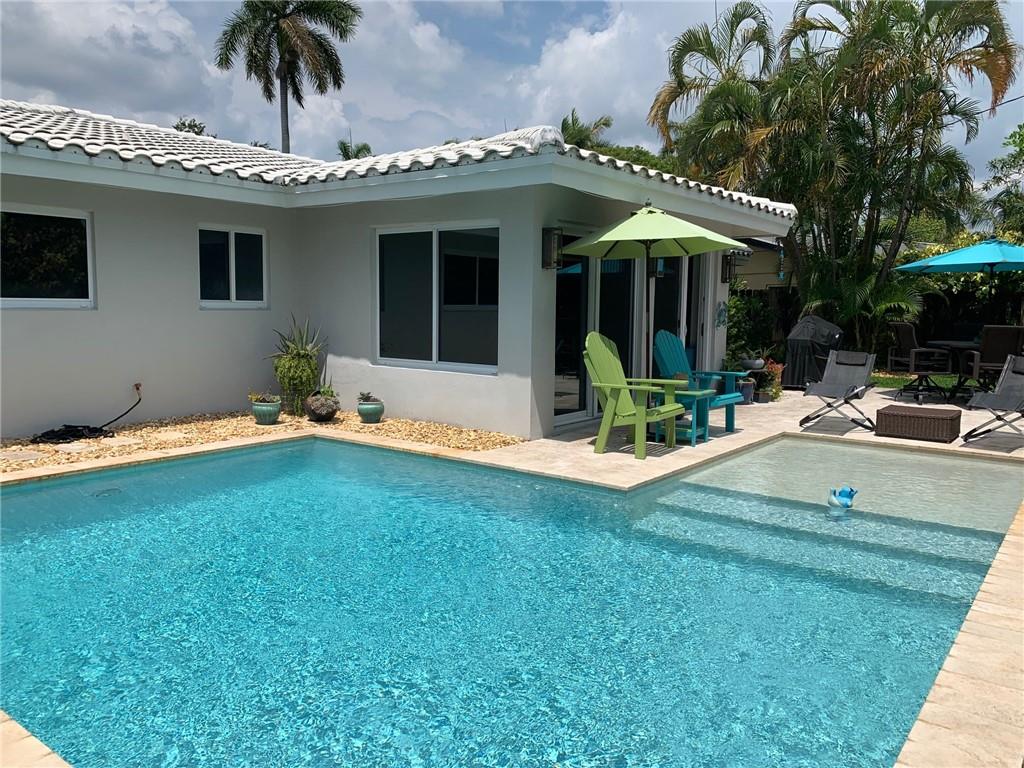 Immaculate professionally designed & renovated pool home with modern elegance and purposeful spaces. You will find stylish finishes & newer modern pool provide the perfect setting for relaxing & entertaining. Natural light flows throughout the open layout. Huge newer gourmet kitchen with Quartzite counters to inspire your inner chef and new master bath provides a daily spa-like retreat. On a quiet street with a park-like setting, fully landscaped yard with sprinkler system in A-rated Floranada School District. This property is just over one mile from the beach at Lauderdale-By-The-Sea. Close to shopping, restaurants, theaters, and more.