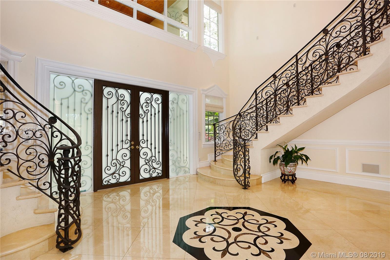Majestic and Gated 2 Story Estate on Lush Acre Plus! Custom built 9792 sq ft. on 51,400 sq. ft lot! Grand Entrance Foyer with double staircase! Grand Spaces and double volume ceilings with Finest Finishes and Details throughout! Banquet sized formal dining and living room, 6 en-suite bedrooms, Elevator, 13 Seat Home Theater, Billiard/Game room, Cherry Wood Office/Library and separate building on property with Gym and extra storage. Amazing back yard for entertaining featuring oversized covered terraces, Resort Style Pool with a Cascading Waterfall & Second Story Jacuzzi, (pool was featured in Pinecrest Magazine in Aug 2014). Outdoor Kitchen with Cabana Bath and Professionally Manicured Landscaping with Majestic Palm Trees throughout.