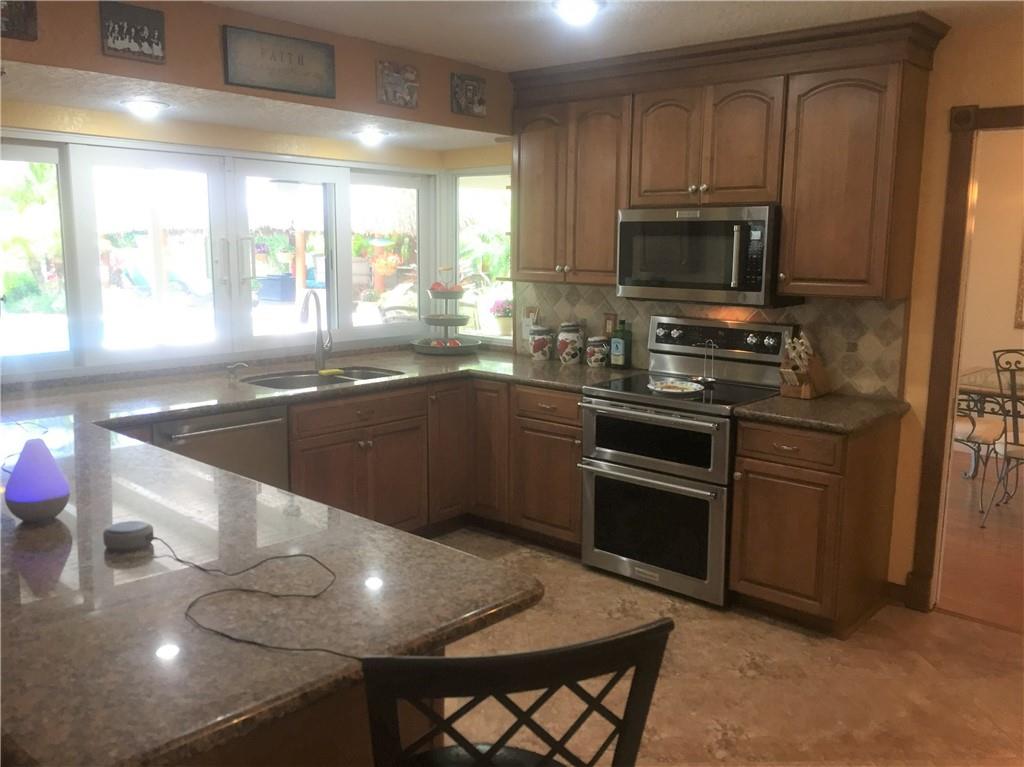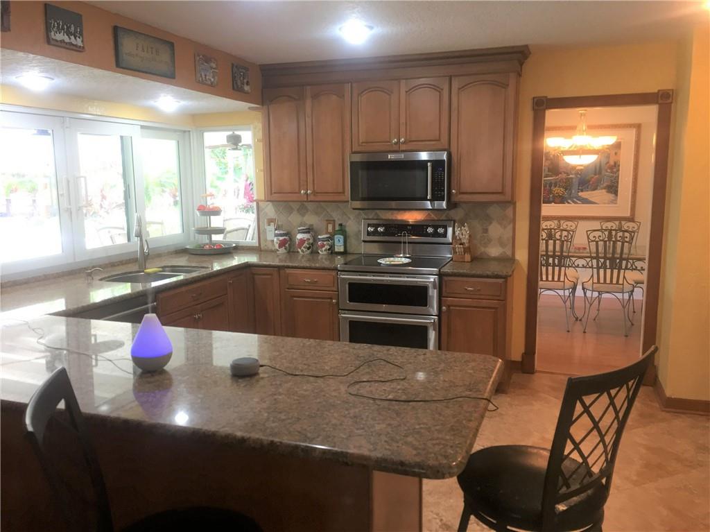 recently painted. gorgeous water views. large tiki hut with electric and built in grill, refrigerator and bar. paver pool deck. extra wide paver driveway. large paver patio. updated kitchen with top of the line stainless steel kitchen aide appliances. granite countertops. updated bathrooms. new air conditioner with warranty. updated electrical panel interior and exterior. hurricane impact sliding doors. storm panels. security camera. alarm system.
