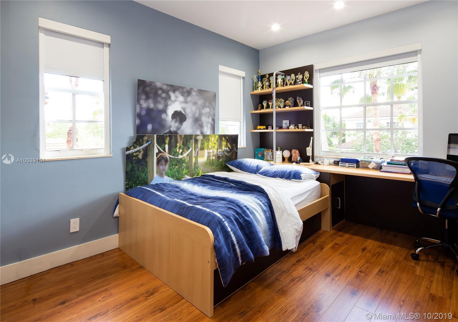 WELCOME TO YOUR DREAM FAMILY HOME! This 2-story elegant and fully upgraded home is located in the exclusive gated community of Presidential Estates with premium direct access to the children’s playground. The home has 3,700 Sq Ft under AC including tremendous double ceiling heights and a state of the art indoor kitchen. Unique outdoor features including a built-in griller, custom woodwork, great backyard space with an artificial grass section and an oversized pool ideal to satisfy a true entertainer's need and perfect to cover all your kid’s necessities making this single family home the best deal in the neighborhood! It offers 4 bedrooms and 3 full bathrooms on the second floor. While the first floor includes a gym with storage space in the garage, Family Room, Playroom and a Maid’s Room