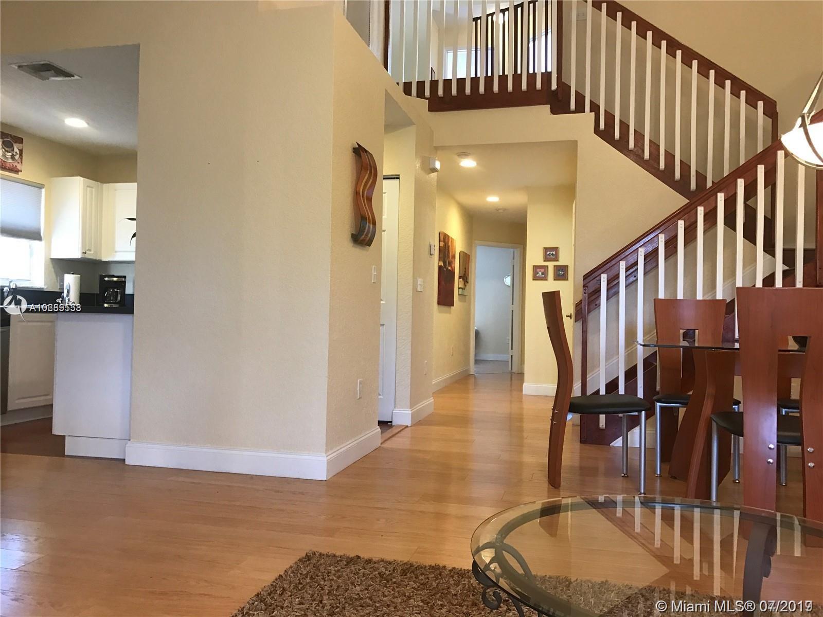 Beautiful, immaculate corner townhome that looks like a new SINGLE-FAMILY home. 3 spacious bedrooms, 2 & 1/2 bathrooms. Large family room on the second floor with storage, plus additional storage room in garage and on 1st floor, remodeled kitchen with stainless steel appliances, laundry room on first floor, volume ceilings, laminate wood floors, 1 car garage with paved driveway for two cars, view from the back patio faces the conservation area, community pool, pets okay. Close to main highways, restaurants, and Sawgrass Mills Mall. Ready to move in!